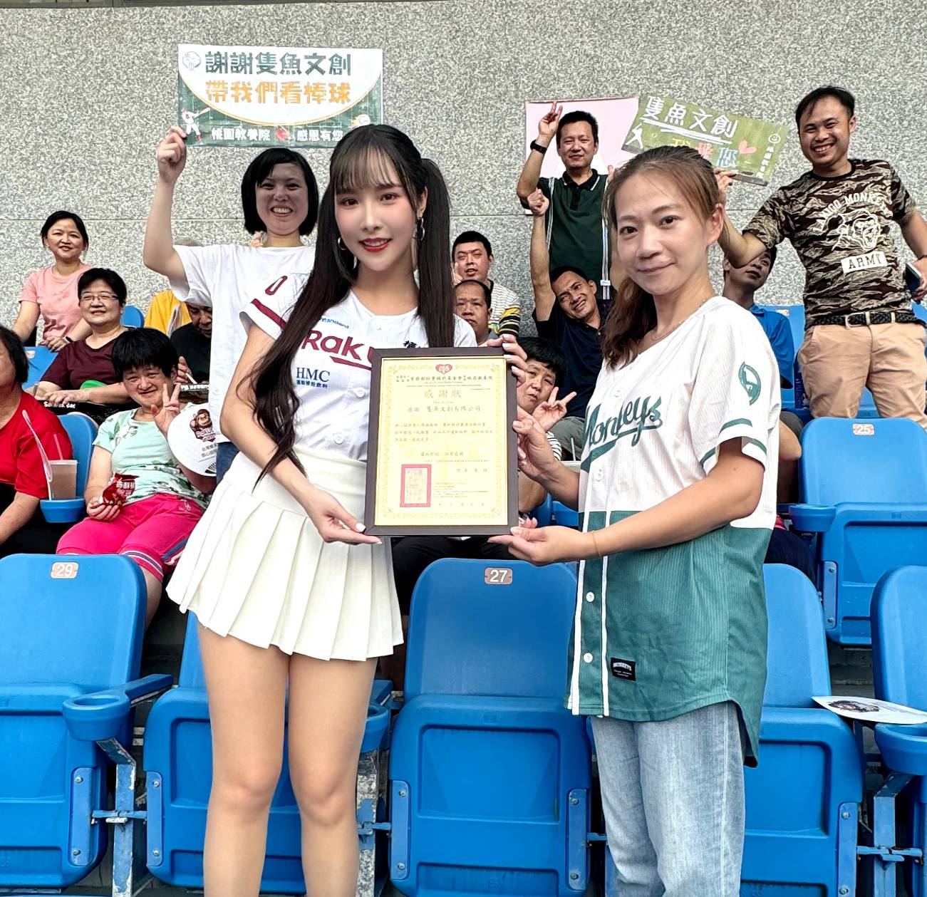 而7月5日為樂天桃猿舉辦的「台灣樂天集團日」,樂天集團此次透過「隻魚文創」,邀請「財團法人桃園市李林樹社會福利基金院附設桃園教養院」的小天使們,讓他們走出院內,到球場觀賞人氣球隊「樂天桃猿」比賽,由該球隊的應援團長Rina謝艾娜陪伴下,小天使們看到心中的偶像開心的與Rina尬舞,更隨著啦啦隊的熱舞,讓天使們盡情舞動手足,親臨球場實境的體驗棒球賽事,睜大眼睛緊盯球場,不時的露出歡呼聲!