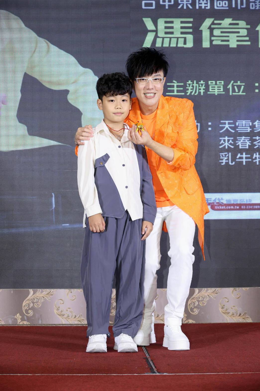 辦桌二人主唱馮偉傑橘紅造型出席「永續愛相馮FOREVER公益演唱會」記者會,這場為慶賀出道22週年的第九場個唱,將於12月7日在台中市中興大學惠蓀堂登場,記者會上馮偉傑以國台語雙聲熱唱破億點閱成名金曲《在心裡從此永遠有個你》,勾起不少回憶殺!
