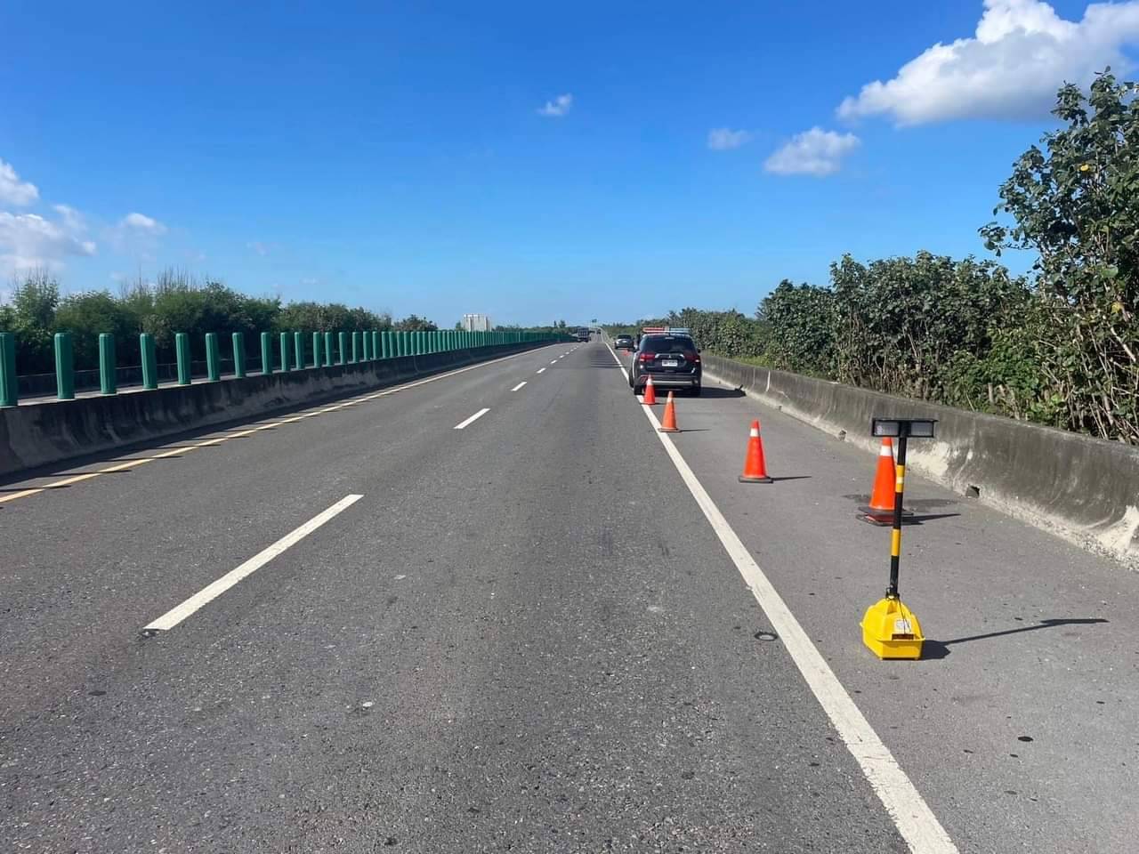「警察先生,在快速道路有車子爆胎很危險,請你們來處理。」日前8時許,臺西分局飛沙派出所接獲民眾報案表示,在臺61線四湖鄉南下235.5公里處有汽車爆胎停放在車道上,警員劉冠杰獲報立即前往。