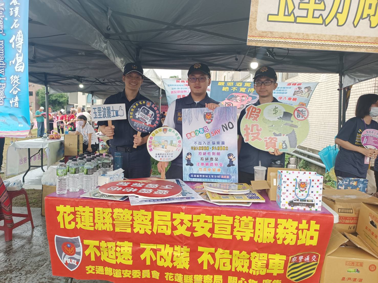 有感於活動現場湧入人潮,花蓮縣警察局玉里分局長黃靖堯指示業務組,為維護現場交通秩序,期前做好勤務規劃,視現場人車潮,擴大周邊交通管制範圍,相關路口皆有部署警力,以利人車動線不受阻塞;另外指派玉里波麗士前往活動現場針對反詐騙、交通安全及婦幼安全方面設攤向民眾宣導,讓民眾能知悉當前警方執法項目及重點,也能防止民眾受騙受害的機會!