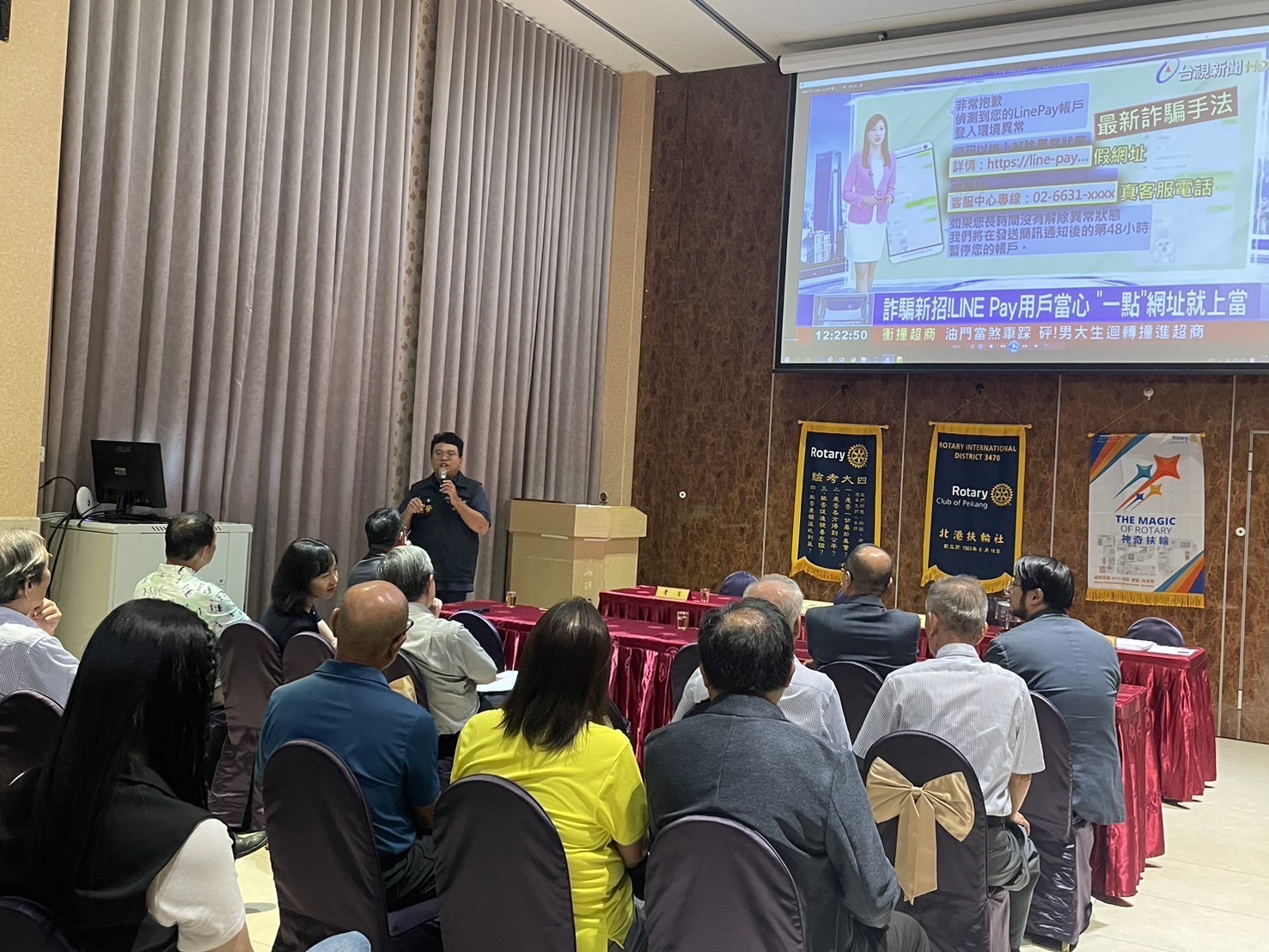 雲林北港扶輪社舉辦社員大會,特別邀請北港警分局長張澤銘前往宣講,鑑於詐騙問題的花招百出與青少年毒品犯罪,造成許多人受害,為加強社友的防詐騙與反毒意識,張分局長細說各類詐騙手法,從親友身分來電裝熟攀談再借錢的詐騙手法、詐騙廣告盜用名人照片,以及投資APP造假數據等等,現場氣氛熱鬧。