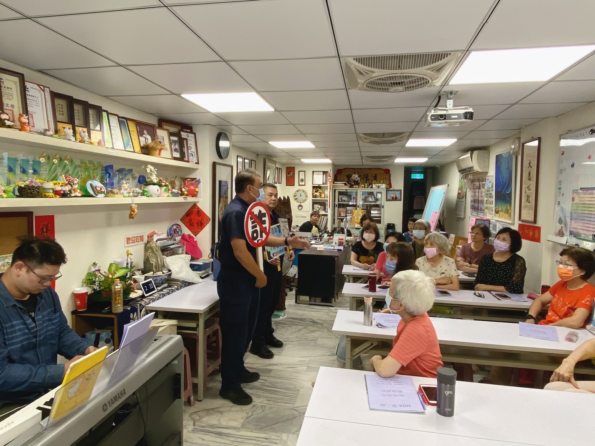為提升社區居民對詐騙手法的警覺性,臺北市政府警察局保安警察大隊在松山區東榮里鄭玉梅里長邀請下,前往社區進行反詐騙宣導,活動內容不僅有豐富的宣導信息,還包括社區歌唱班及流行音樂賞析等互動環節,吸引許多家庭主婦參與。