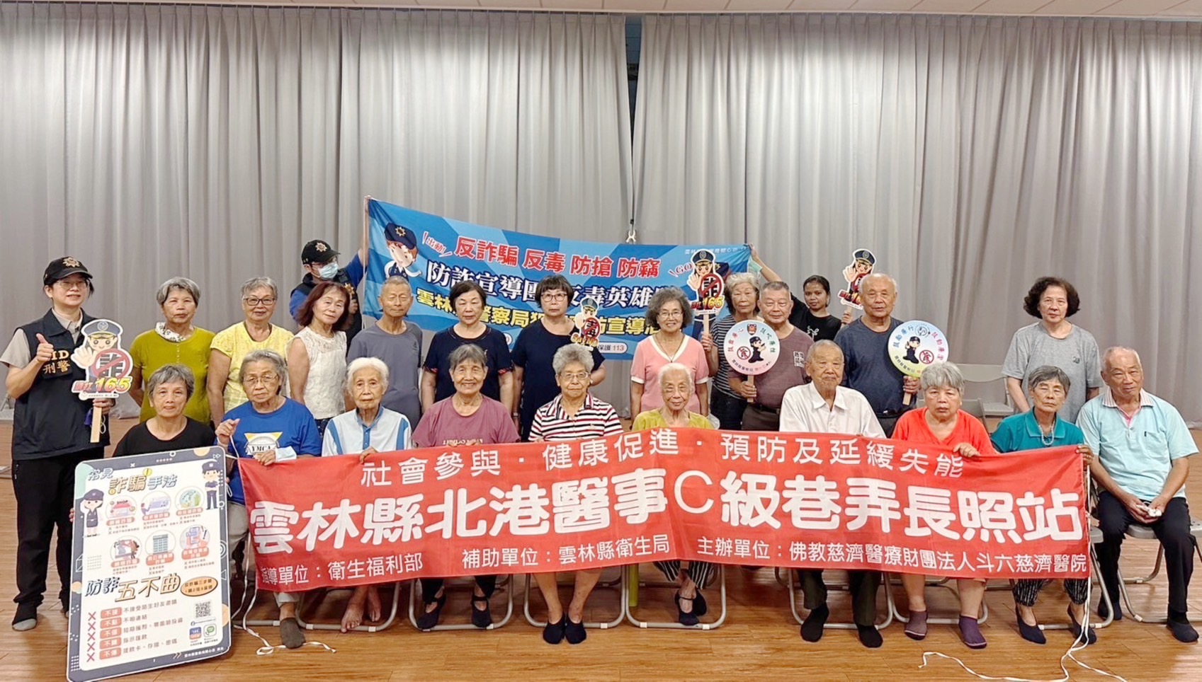北港警分局預防犯罪宣導團接獲慈濟北港聯絡處C級巷弄長照站邀請,針對「高齡長輩各類型詐騙案件」施打「預防反詐宣導疫苗針」,由偵查隊偵查佐林玲妤擔任主講人,針對各類型老人家常見詐騙手法分析及案例分享,現場解說及溫馨提醒如何應對以預防詐騙並保護老本。
