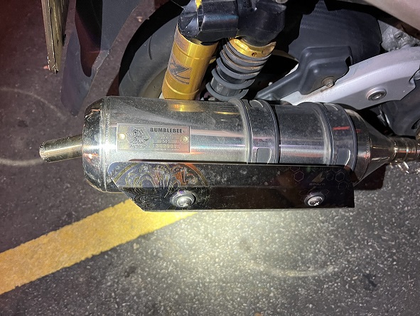 臺中市政府警察局第二分局永興派出所員警於113年8月14日晚間執行巡邏勤務,短短兩小時就開出5張噪音車通報單,其中更有1人改裝頭燈、2人無照駕駛,還有一人身穿「高架暴徒」字樣上衣深夜未開啟機車大燈在路上馳騁,加上機車引擎轟隆轟隆的巨大聲響,格外引人注目,也因排氣管未貼有環保局合格標章,經員警開立噪音車通報單後,交由環保局進行複檢。