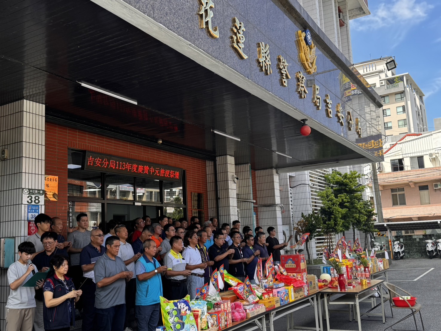 為延續尊重與感恩的傳統,吉安分局於8月20日舉辦中元普渡祭拜儀式。此次祭拜由分局長林俊廷親自率領全體同仁,並邀集協勤同仁(義警、民防、志工、巡守、警友幹部等)共同參與。