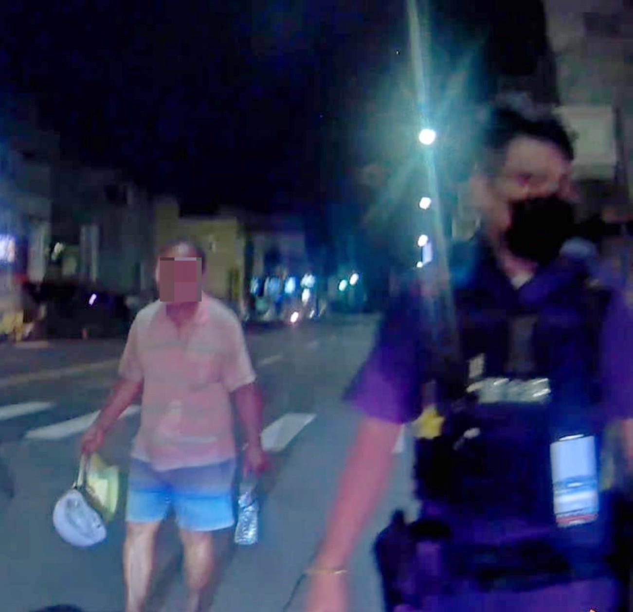 警方看他神情疲累、衣著單薄,遂以警車載他回住家;余翁說,正當體力用盡、徬徨無助之際,幸好遇見警方上前關心詢問並施援手,感謝有波麗士大人願意給予一絲溫暖。