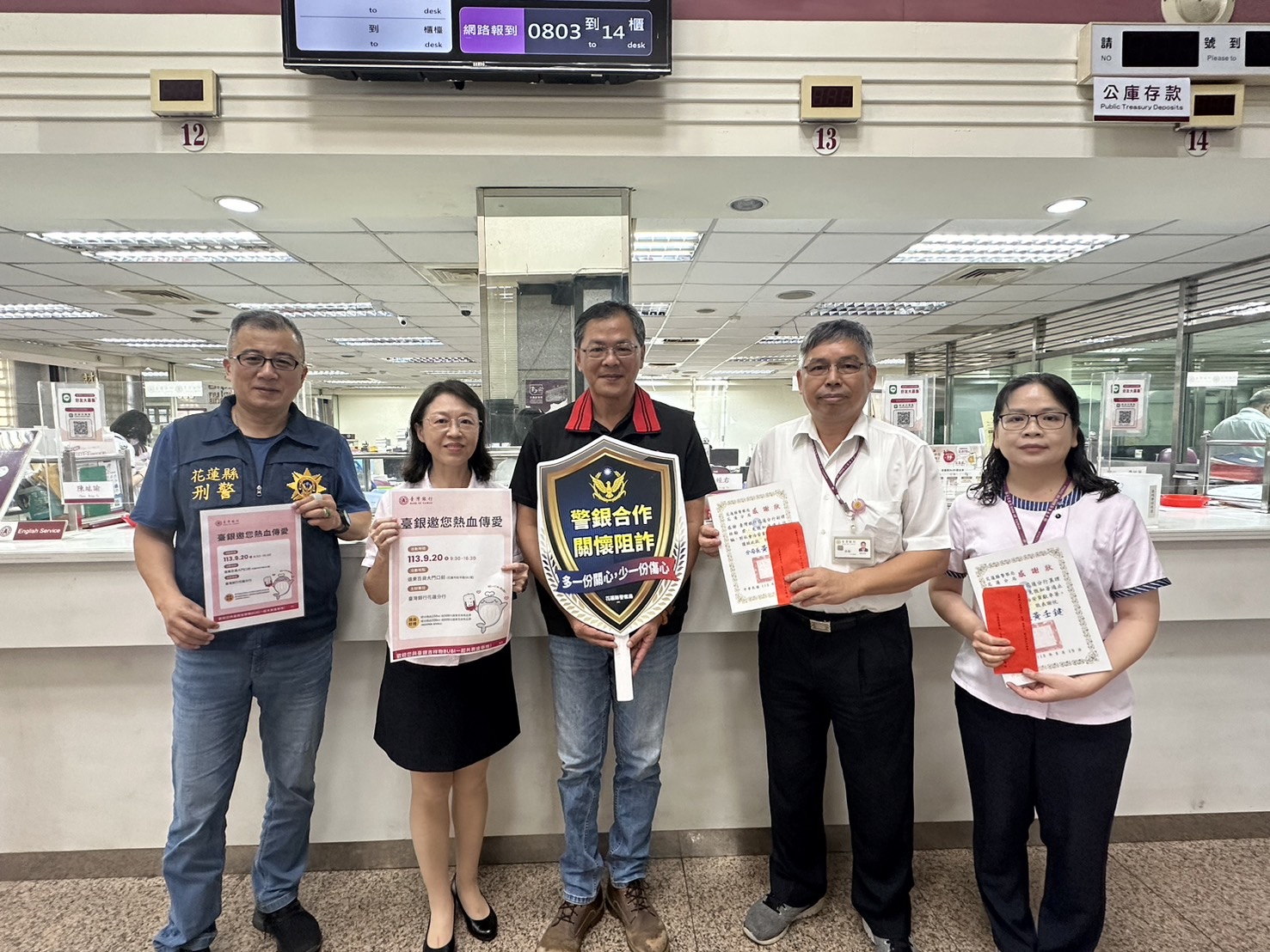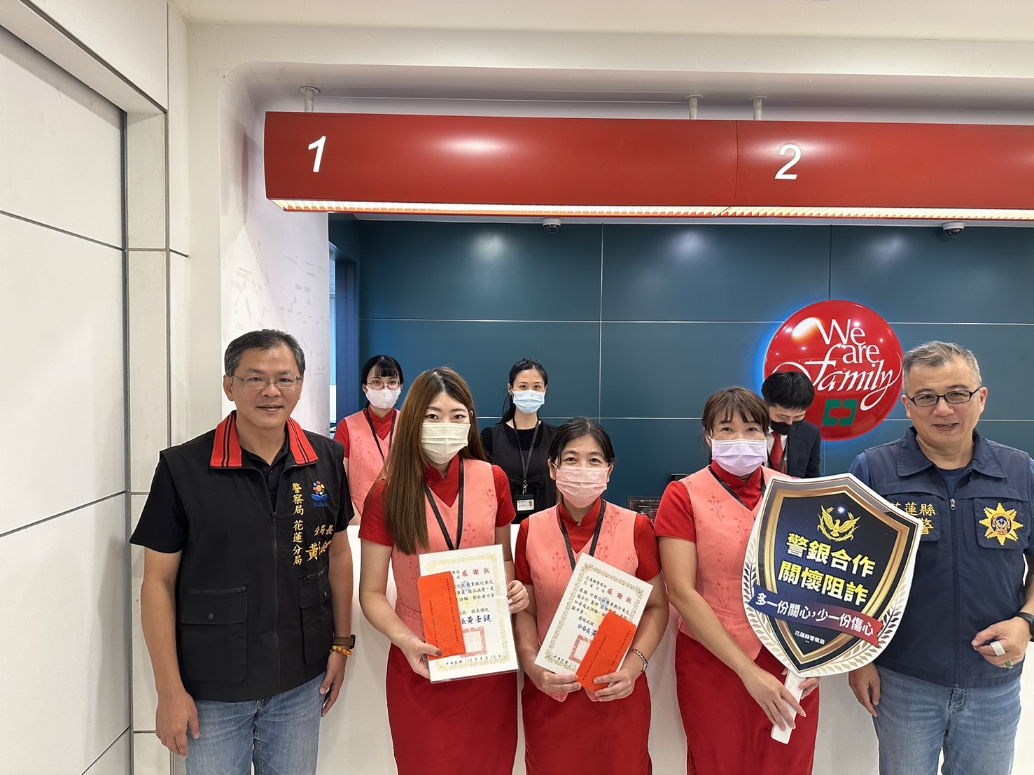 此外,藉由此次表彰阻詐有功行員的機會,花蓮分局也特別針對目前日新月異的新型詐騙手法,加強行員與店員的識詐量能,持續配合警方共同把關民眾財產安全;提醒民眾隨著科技的進步,詐騙集團利用社交媒體及各類通訊軟體,推陳出新,特別是投資詐騙、假冒官方機構、網路平台詐騙及假親友詐騙等務必多加謹慎小心。