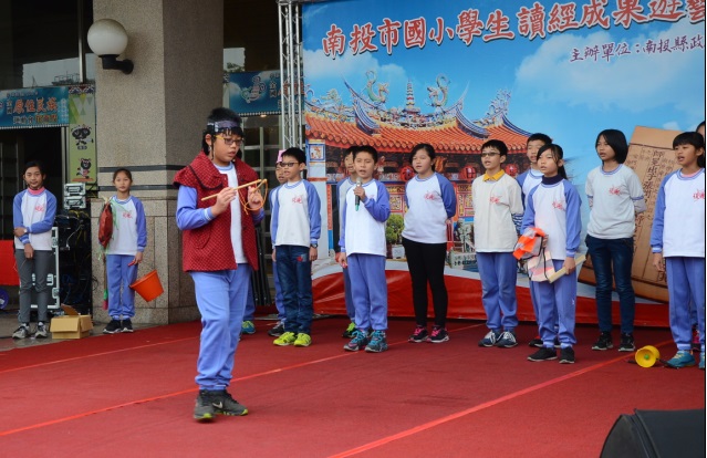 南投市「讀經開智慧、遊藝展才華」國小學生讀經成果遊藝觀摩會,十二日上午在南投縣立體育場前廣場熱鬧登場,縣府教育處長彭雅玲、文化局長林榮森都出席致意,來自南投市十六所國小約五百多位學生,以詩詞吟唱、舞蹈、相聲、武術等才藝相互結合方式,展現「讀經行動年」的學習成果,過程相當精彩。