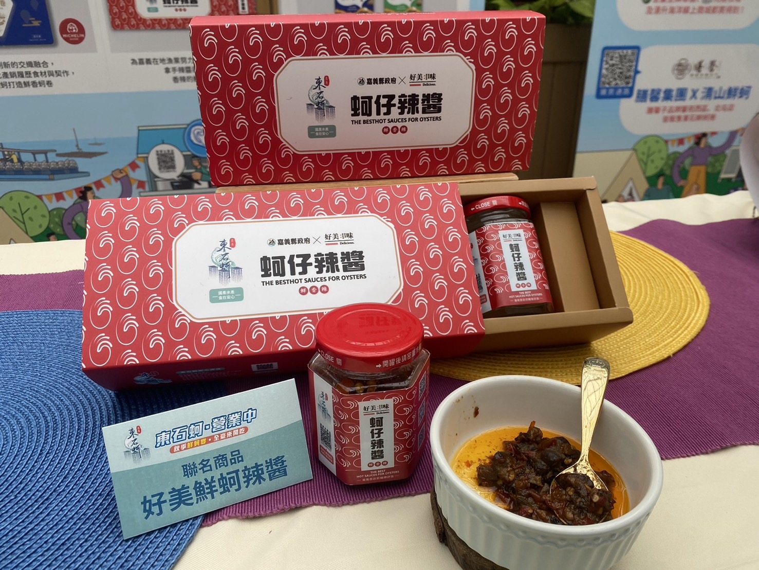 記者會中,也展示了嘉義溯源牡蠣與知名業者推出的聯名商品,包含膳馨餐飲集團的東石蚵卷、好美農漁產的蚵仔辣醬、崇文海鮮的咔啦蚵等美食,讓東石蚵以多元的形式呈現,提供民眾多種品嚐管道。