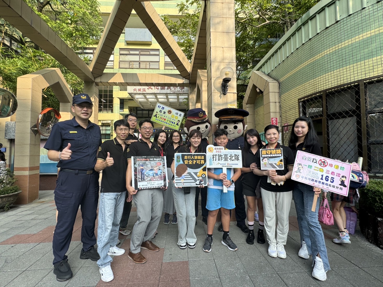北投分局除規劃開學日護童勤務,加強維護校園周邊交通安全外,亦結合反詐騙及交通安全等宣導活動,派出警察大頭娃娃與孩童們拉近距離,並於現場採發放小禮物等互動方式,吸引家長、學童及導護志工們爭相合照,希冀透過寓教於樂的宣導方式,將「路口慢看停」、「行人安全行」、「下車時應兩段式開啟車門並注意後方來車」、「學童乘坐汽車時應繫上安全帶」之正確交通安全觀念,以及「假網拍」、「假投資」、「假檢警」、「AI詐騙」等反詐騙知識深植家長及學童心中。