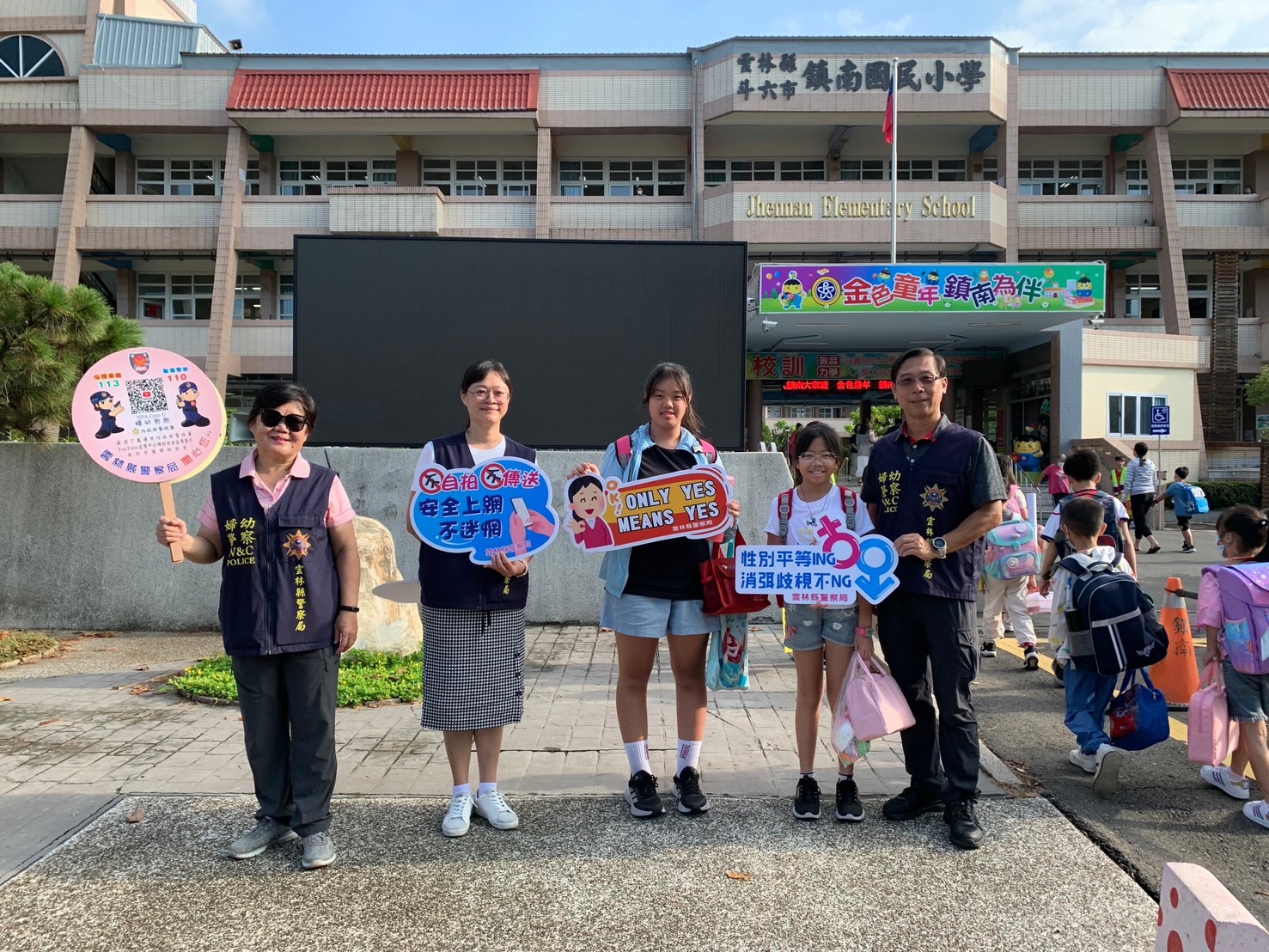 雲林縣長張麗善上任以來,特別重視婦幼人身安全,尤其致力於營造友善安全的校園環境,雲林縣警察局局長李建民有感張麗善縣長對學童安全殷切的關心,因此,將校園安全維護列為重點工作,執行校園週遭安全巡邏、交通疏導已是警察日常勤務。另鑑於網路新世代來臨,3C產品普及,兒童接觸網路誘惑與陷阱的機率大幅提升,不論是被恐嚇、脅迫或利誘、自願拍攝、傳送私密照,被害人的年紀逐漸降低,案件逐年增加,警察局特別提醒各位家長及小朋友,網路交友充斥陷阱,務必把握四不原則「不脫、不拍、不上傳、不散布」,以免自己成為被性剝削或敲詐勒索的對象,面對不合理的要求要勇敢地說「不」,做自己身體的主人。