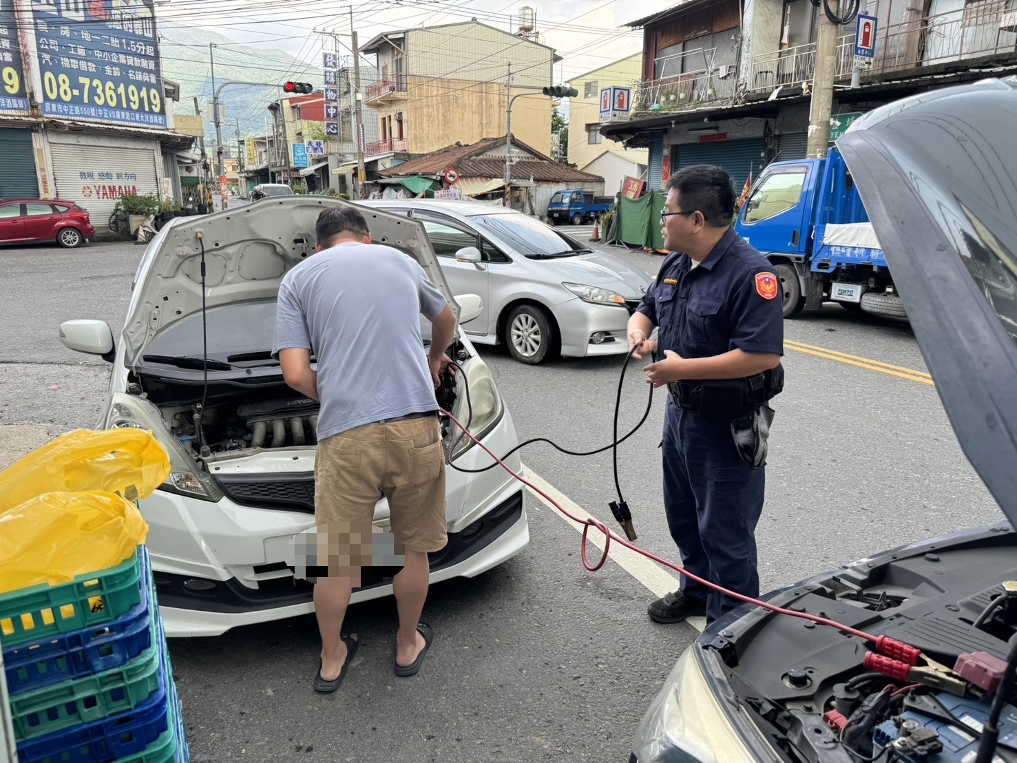 里港警分局泰山、新南聯合服勤所副所長張泄文、警員黃俊堯於日前午間接獲民眾報案請求協助,有車輛停在高樹鄉三民路段無法發動。警方到場後發現疑為車輛電池沒電,恰好副所長張泄文車上有帶救車線,主動施以援助,用警車為拋錨車輛接電提供電力,深獲民眾感激。