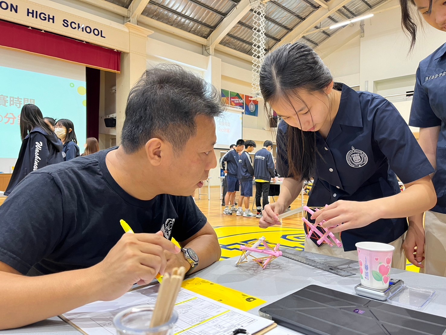 臺中市華盛頓高級中學舉辦了一場別開生面的校內遠哲科學競賽。此次比賽共有35組同學踴躍參與,以團隊形式展開激烈競逐。本次活動的設計不僅考驗同學的創意與合作能力,更透過實作的方式,讓同學在實驗中學習科學知識與技能,增強問題解決的能力。