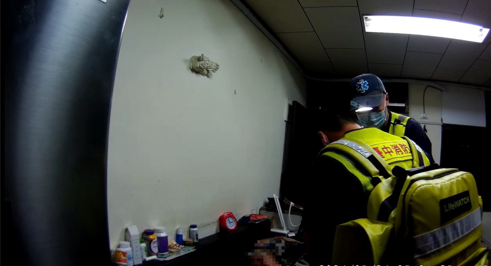 日前臺中市政府警察局第四分局大墩派出所警員楊程翔、黃鴻翔接獲民眾緊急報案,稱於南屯區惠德街一處民宅有人昏倒在家中亟需員警協助。員警獲報後第一時間通報救護人員到場,但該址大門深鎖,僅聽到屋內傳來男子喊著:「救救我太太」聲音,伴隨呼救聲逐漸微弱,消防人員緊急破門入內,映入眼簾的是一名婦人意識不清躺臥在床上,而求救的男子慌張的請求警消查看婦人是否尚有氣息。