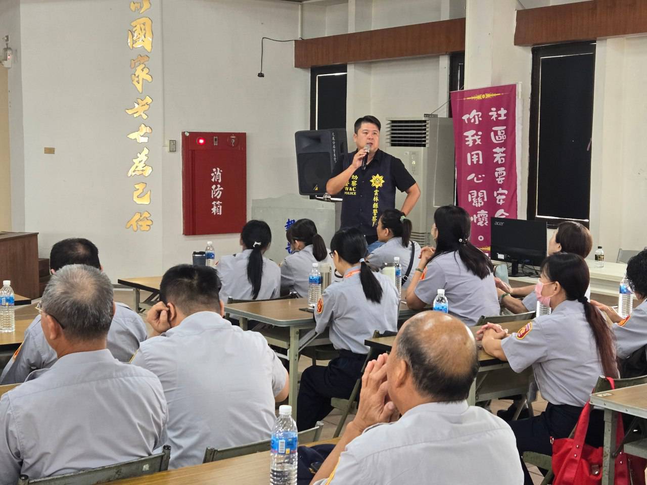 本次訓練課程由警察局保安科科長李建興、虎尾分局第五組(交通)組長黃春榮、第三組家防官許聰韓等人,針對業管範圍授課,課程內容生動活潑,透過與學員間良好互動及精闢的解說與宣導,讓協勤義警人員清楚了解各項勤務規定及提升自身協勤能力。