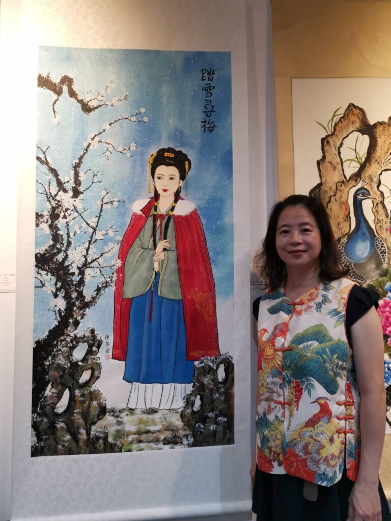 熊筱萍表示,跟隨文珍老師學習國畫近10年了。從基礎的梅蘭竹菊,老師一點一滴的認真導引,認識傳統文化,山水的壯麗以及花卉的優雅美麗。在人生的道路上增添多彩,也豐富了知識,在這次的師生聯展作品也是學習的成果展現。熊筱萍認為,繪畫需要很大的耐心,勇往直前。畫出一個滿意的作品,需要透過不斷地學習、吸收外來的資訊。認真努力,成果也是甜美的果實。