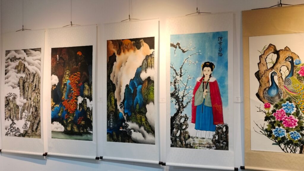 竹亞軒的學員陳苓芝則表示,文珍老師很認真的教每位學生,也會根據每個人的專長特點去引導,讓每位學生能夠畫出自己的風格。這幾年在老師的帶領下,慢慢的累積實力畫功,可以在元保宮現場揮毫畫圓扇,每年在新北市的中華文耀國際藝術聯合畫展,可以展出自己的作品。