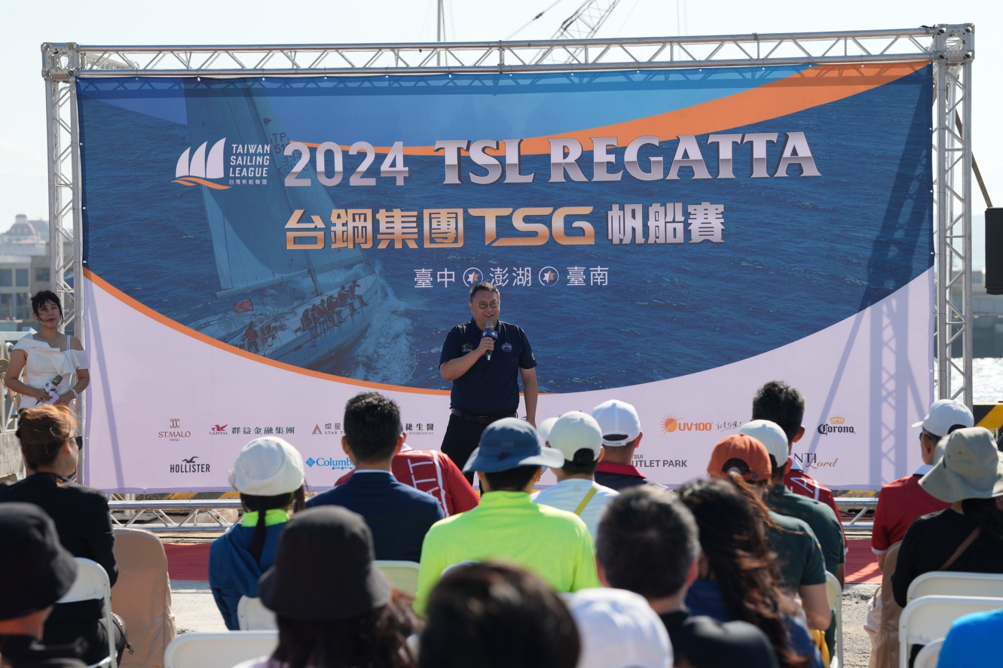 亞果遊艇集團主辦的「2024台鋼集團TSG帆船賽」今(10)日在台中碼頭隆重啟航。來自各地的帆船頂尖選手們齊聚一堂,展開跨越150海浬的激烈競逐,途經澎湖後最終抵達台南安平。啟航儀式在金旗揮舞表演中拉開序幕,宛如帆船揚帆的壯麗景象,渲染了現場的熱烈氣氛,象徵著挑戰極限與勇於冒險的精神,為雙十連假增添無限海洋魅力。