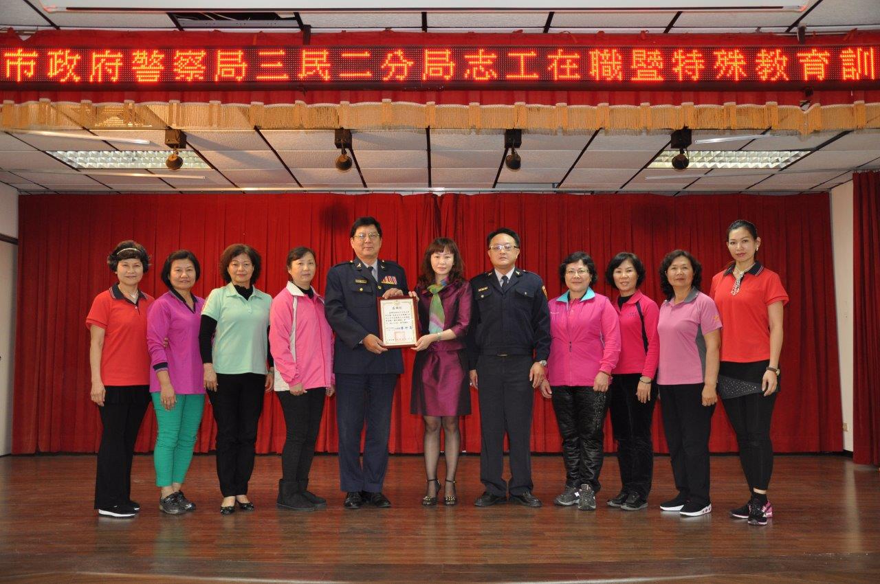 為精進警察志工學能,提升服務品質,高雄市政府警察局三民第二分局,舉辦「一0五年上半年度警察志工特殊教育訓練及治安座談會議」,參加人員為分局現職警察志工暨未受特殊教育訓練之新進志工共一百八十八名,會中由分局長李世昌公開轉頒發志工服務時數達八千小時以上獲頒「中央志願服務獎勵」績優志工有十六名、「高雄市績優志願服務獎勵」績優志工十五名、該分局「服務時數徽章獎勵」績優志工二十五名及該分局「一0五年度春安工作績優志工」十二名,當日合計共六十八名志工獲獎,以感謝長年辛勞付出之志工姐妹,熱忱參與協助推展警察為民服務工作。