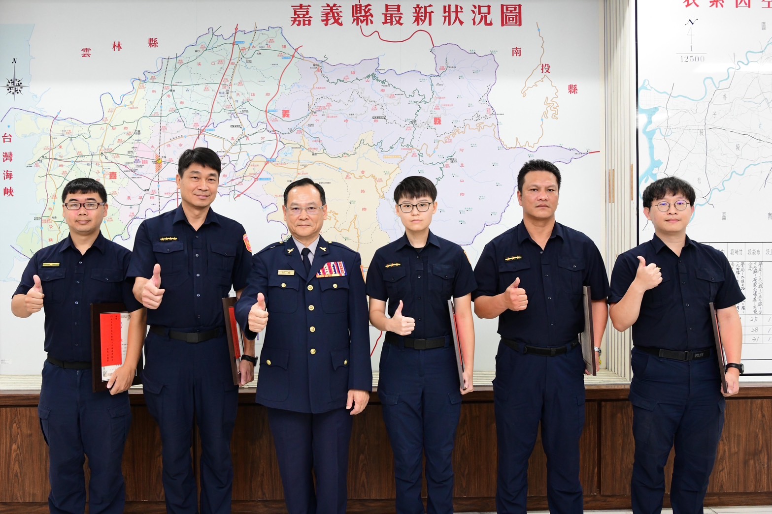 嘉義縣警察局局長李權哲利用局務會報機會,公開表揚為民服務績優的員警,計有