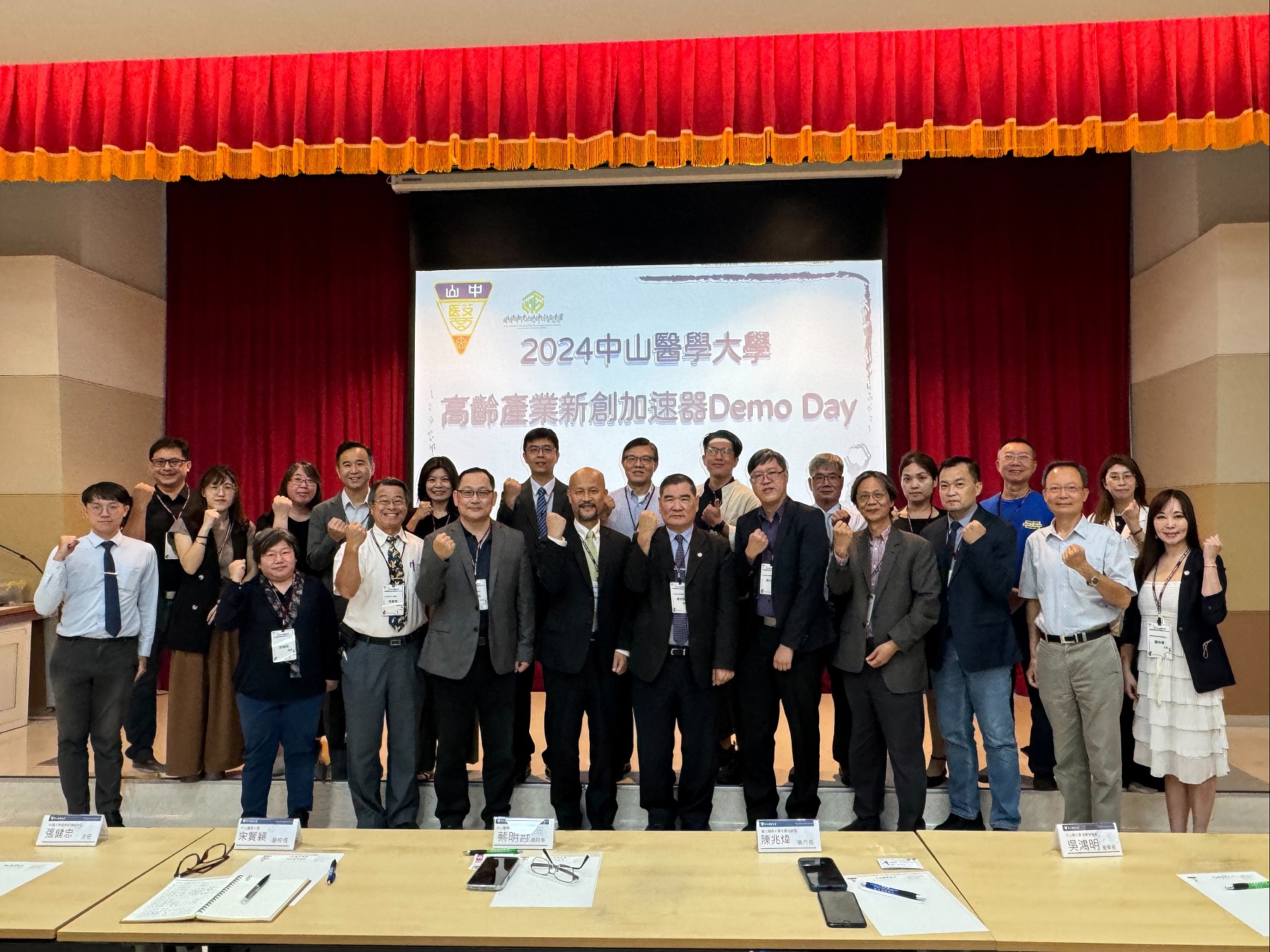 此次Demo Day從第一批培育的15家新創企業中,遴選出6家極具代表性的企業進行成果展示,產品涵蓋高齡生技、長者醫療輔具、銀髮族保健食品、創新醫療器材及線上長照課程等。活動邀請台北醫學大學生醫加速器執行長陳兆煒、中興大學產學研鏈結中心主任張健忠、研創資本(股)公司投資副總文健羽、中山醫大心理學系主任何應瑞及產學營運處技術移轉中心主任林玉欽擔任評審,中山醫大副校長宋賢穎與中山附醫總院長蔡明哲也親臨現場,期盼新創企業能為高齡產業帶來新能量與變革。