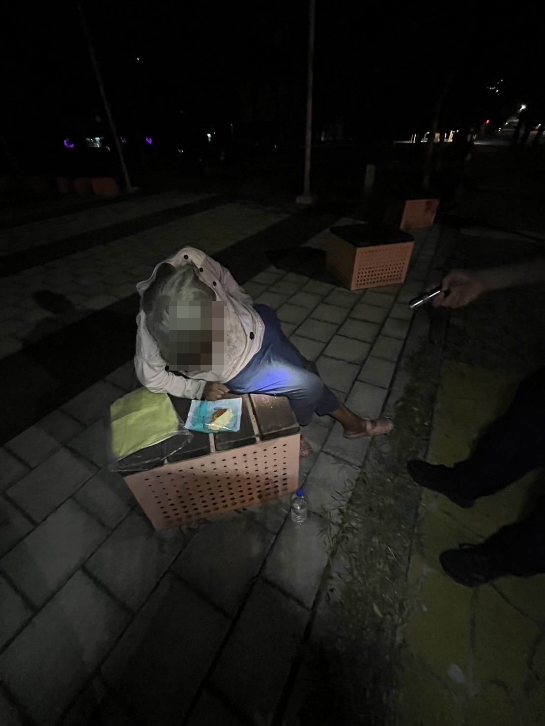 警方到場時,熱心的報案民眾向警方表示,這位白髮蒼蒼、年紀約70歲的婦人已經獨自坐在路旁椅子上好一陣子,神情顯得十分疲憊,報案民眾怕她肚子餓,所以就先買了麵包及水給婦人止飢,因為不知道婦人住在何處,只好報警請求警方協助。