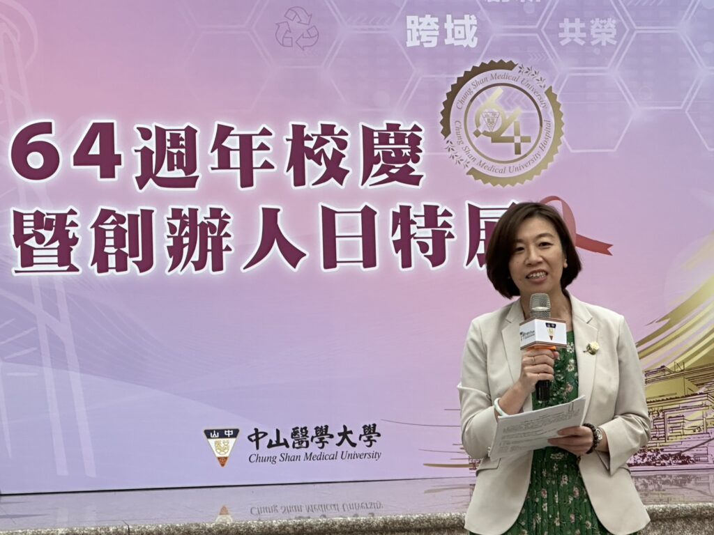 衛福部政務次長林靜儀回憶自己參與HIV產婦的照護經歷,指出早期台灣社會對HIV的歧視,但中山附醫始終堅持對所有患者提供平等醫療服務,對醫界包容性的影響深遠。她表示,這段經歷加深了她對「醫人、醫病」的體悟,並期待中山醫大暨附設醫院持續發揮專業優勢,打造更多元包容的醫療環境,持續提供傳染病友善的就醫環境。