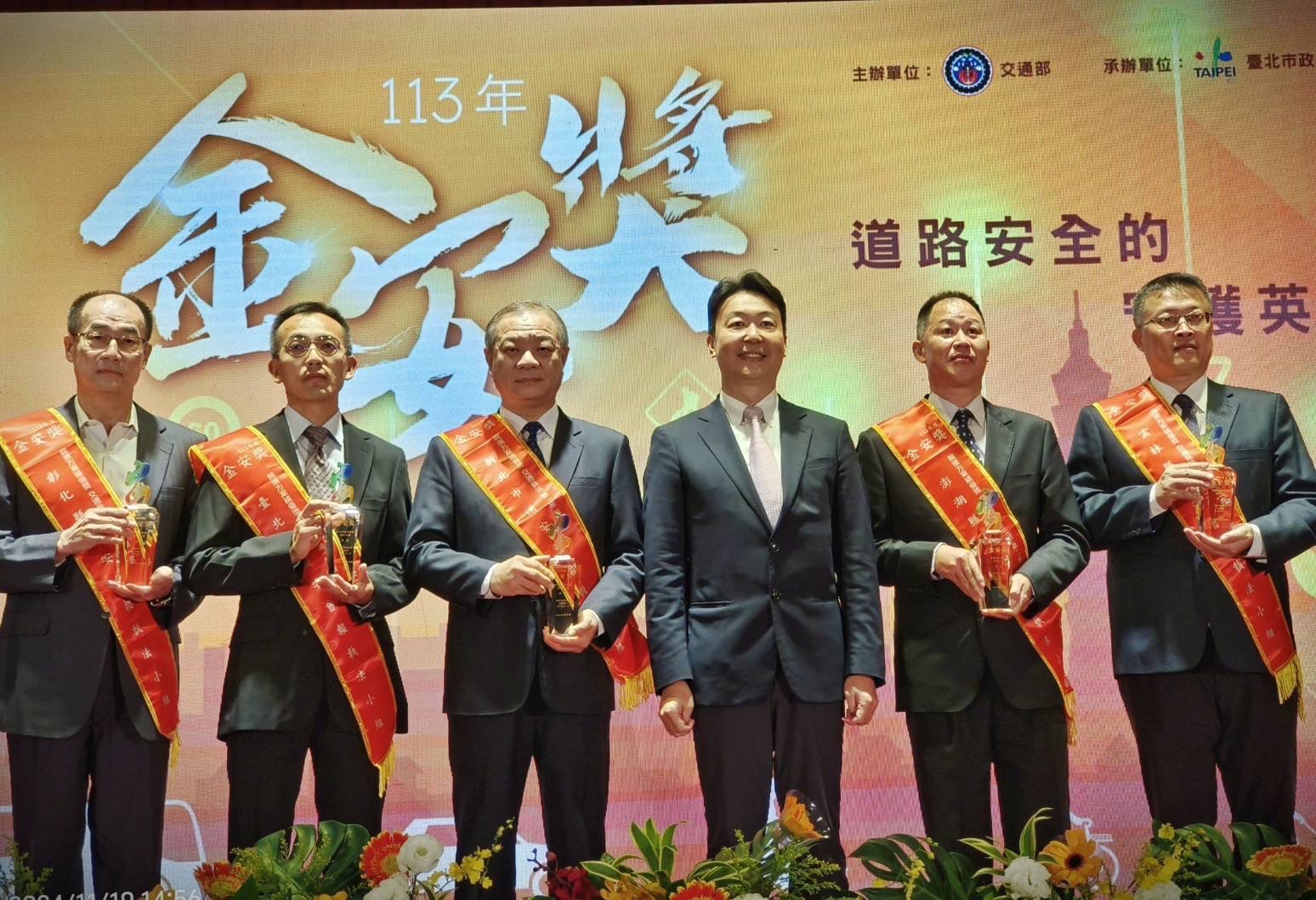 交通部於113年11月19日14時在臺北國軍英雄館1樓宴會廳,辦理「113年金安獎」績優單位頒獎表揚典禮;本縣113年榮獲交通部院頒方案「特別獎/行人安全」獎項獲評全國不分組第3名、「單項成績優秀獎/交通執法」項目獲評縣市第二組第2名,由雲林縣警察局局長李建民代表接受2項「金安獎」盃表揚,並於今(21)日縣府主管會報中,將獎盃親呈給縣長,獲縣長張麗善再次肯定。