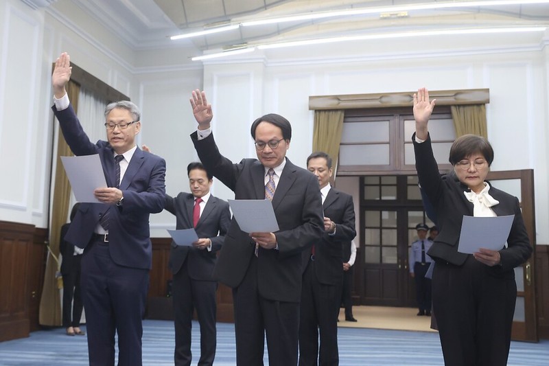 北北基臺北市總統主持「新任行政院政務人員及駐外大使宣誓典禮」 陳 羿翔1 年 ago01 mins 【記者蔡念真台北報導】賴清德總統今(21)日上午主持「新任行政院政務人員及駐外大使宣誓典禮」。 宣誓儀式開始後,總統就監誓人位置,隨後司儀唱名宣誓人,宣誓人由駐奧地利特任大使劉玄詠帶領宣讀誓詞;宣誓後,總統逐一向宣誓人致意,儀式簡單隆重。副總統蕭美琴及總統府秘書長潘孟安等均在場觀禮。 宣誓人員尚包括:不當黨產處理委員會主任委員林峯正、勞動部政務次長黃玲娜、駐斐濟大使周進發、駐丹麥大使鄭榮俊、駐印尼大使洪振榮、駐聖露西亞大使蘇瑩君。 文章導覽 Previous: 花蓮分局長赴警廣花蓮臺 解析詐騙手法及相關案例Next: 履行臺巴關稅減讓承諾 政院通過「海關進口稅則」部分稅則修正草案 發佈留言 取消回覆發佈留言必須填寫的電子郵件地址不會公開。 必填欄位標示為 *留言 * 顯示名稱 * 電子郵件地址 * 個人網站網址 在瀏覽器中儲存顯示名稱、電子郵件地址及個人網站網址,以供下次發佈留言時使用。