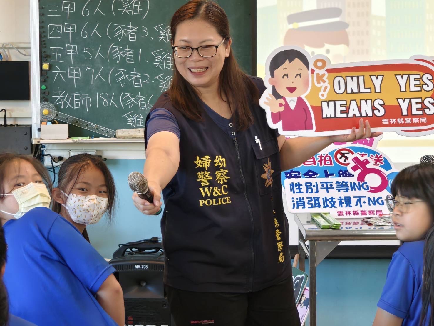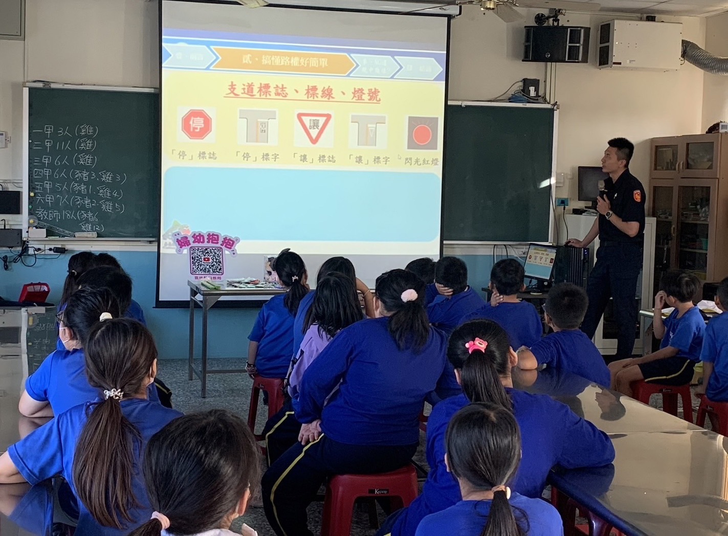 【記者鄭忠嘉雲林報導】為加強防制學童交通事故發生暨有效防治兒童被害,雲林縣警察局北港分局家防官蕭雅芳與警員吳柏諺11月22日受邀前往口湖鄉頂湖國小進行交通及婦幼安全宣導。
