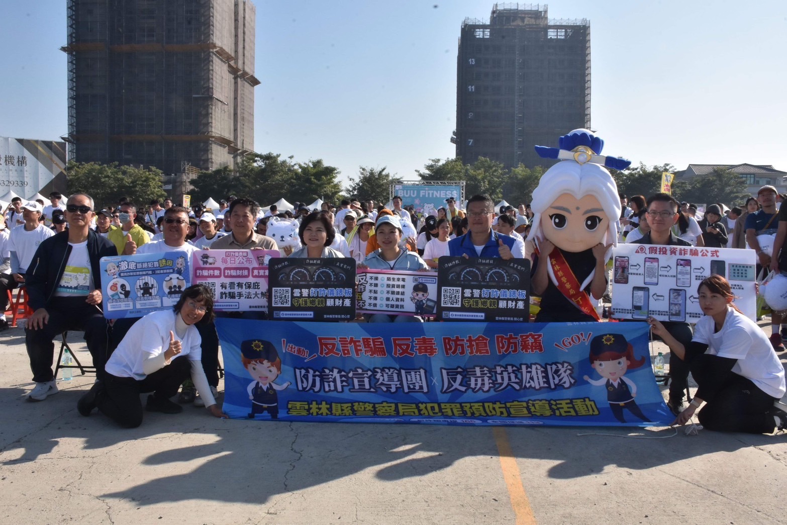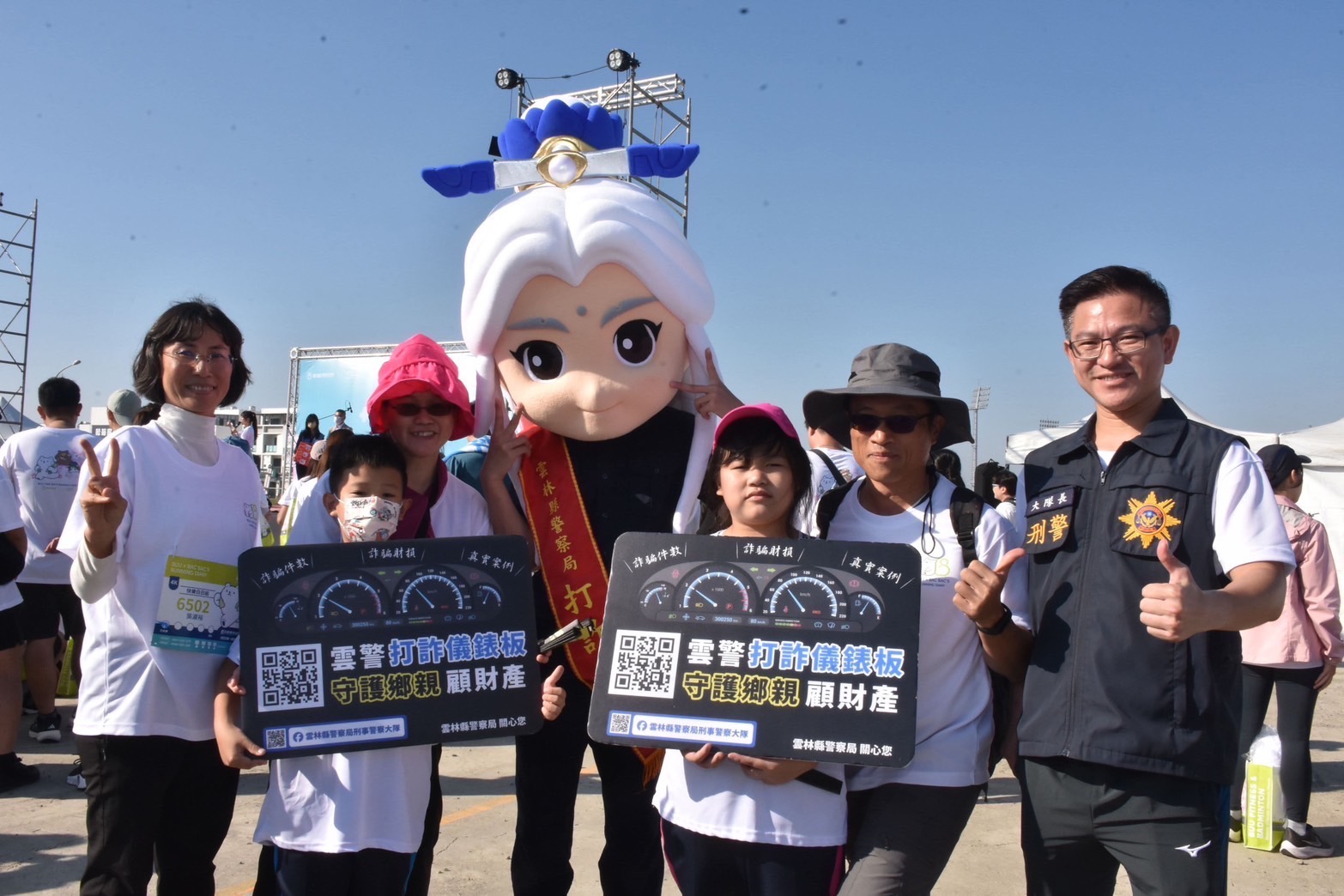 另也公布雲林縣近期打詐成果,包括8月至11月詐欺案件數從479件降至353件,財損金額減少1,735萬元。活動也結合有獎徵答,吸引大批跑友駐足參與,進一步提升防詐意識。李建民局長指出,雲林縣8月至11月詐欺案件,從479件下降至353件,減少126件;財損金額,從2億3,982萬下降至2億1,247萬,減少1,735萬元,與全國相比,全國11月受理1萬7,601件,雲林縣11月受理353件,占全國2.01%,全國11月財損122億6,900萬,雲林縣11月財損2億1,247萬,占全國1.73%。分析雲林縣發生件數及財損最高之詐欺手法為假投資詐騙,亦為本次警察局打詐專案重點查緝目標,警察局執行113年第4波打詐專案,在為期2週專案期間內,查獲26件詐騙集團,犯嫌155人,查扣不法利得總價1,104萬餘元,車輛8臺,並溯源系統商、水房首謀、金主、控盤首腦等核心成員,並提供預防措施的相關資訊。更有趣的是,「霹靂雲警」在活動中登場,帶領大家參與反詐帶動唱《愛錢的騙子》,歌詞幽默風趣,讓群眾在熟悉的旋律中學習識別詐騙手法、強化防範意識,現場參加者紛紛加入,場面溫馨且充滿笑聲。