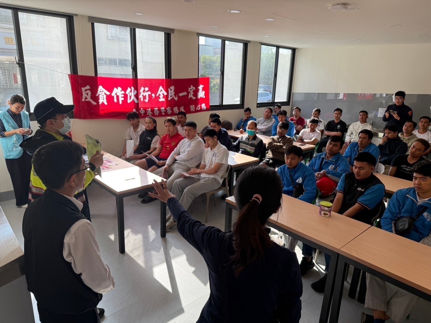 【特派記者鄭榕嫻台中報導】臺中港務警察總隊12月5日於港區公司舉辦反詐騙暨廉政教育宣導活動,將嚴肅的法律規定及職業相關議題轉化為生動互動的課程,展現執法單位對外籍勞工權益保護的高度重視。