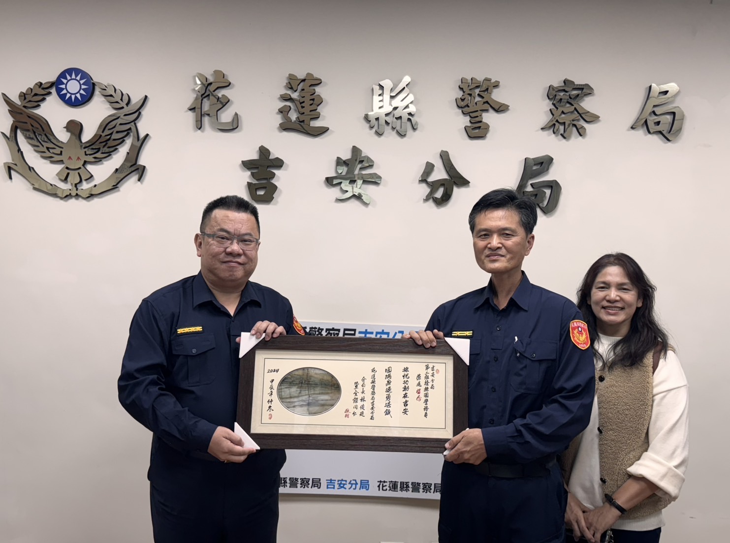 分局長林俊廷代表全體同仁向徐警務員表達由衷的感謝與祝福,並致贈紀念匾額,感謝警務員多年來的兢兢業業以及無私的奉獻。徐警務員對警務工作的熱忱與付出將永遠被銘記,同時也期許警務員在未來的生活順遂、身體健康、充實與幸福。