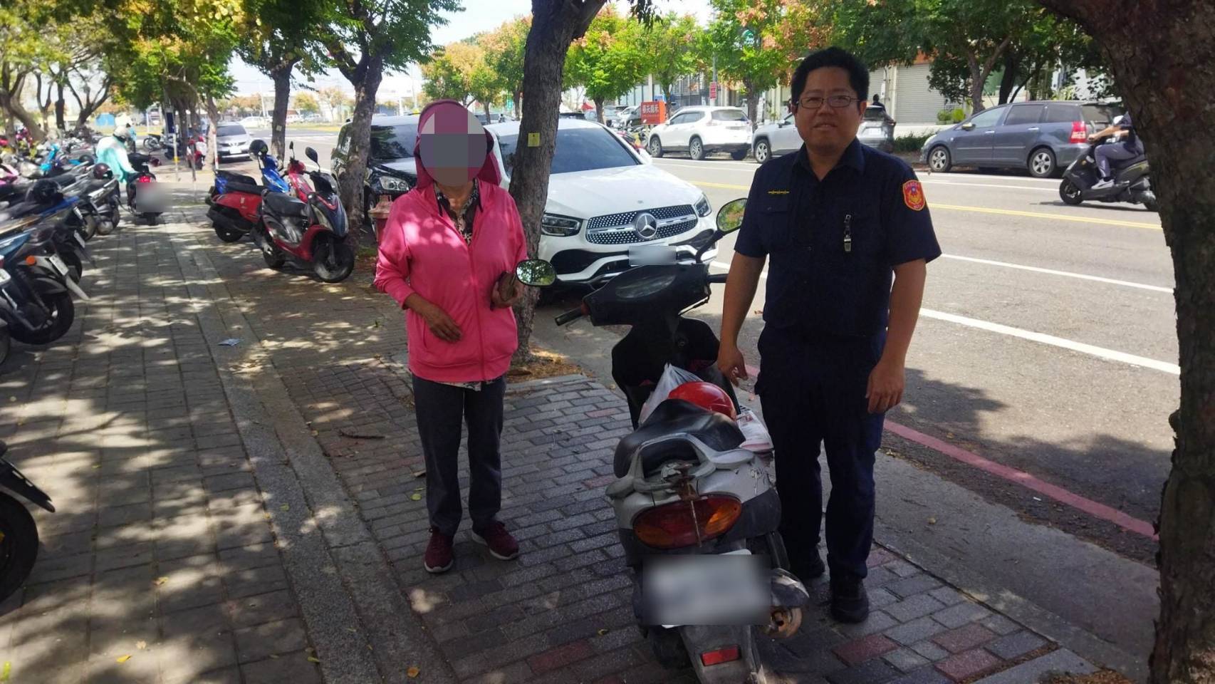 虎尾警分局埒內派出所警員楊淵至日前接獲一位詹姓婦人心急報案,稱停放在台大醫院虎尾院區前的機車疑似遭竊,且信誓旦旦說就是停在失竊地點不可能記錯;警方了解案情後,研判應係搞混停放地點,陪同婦人徒步逐一尋找半小時後,最終順利尋回她的愛車。