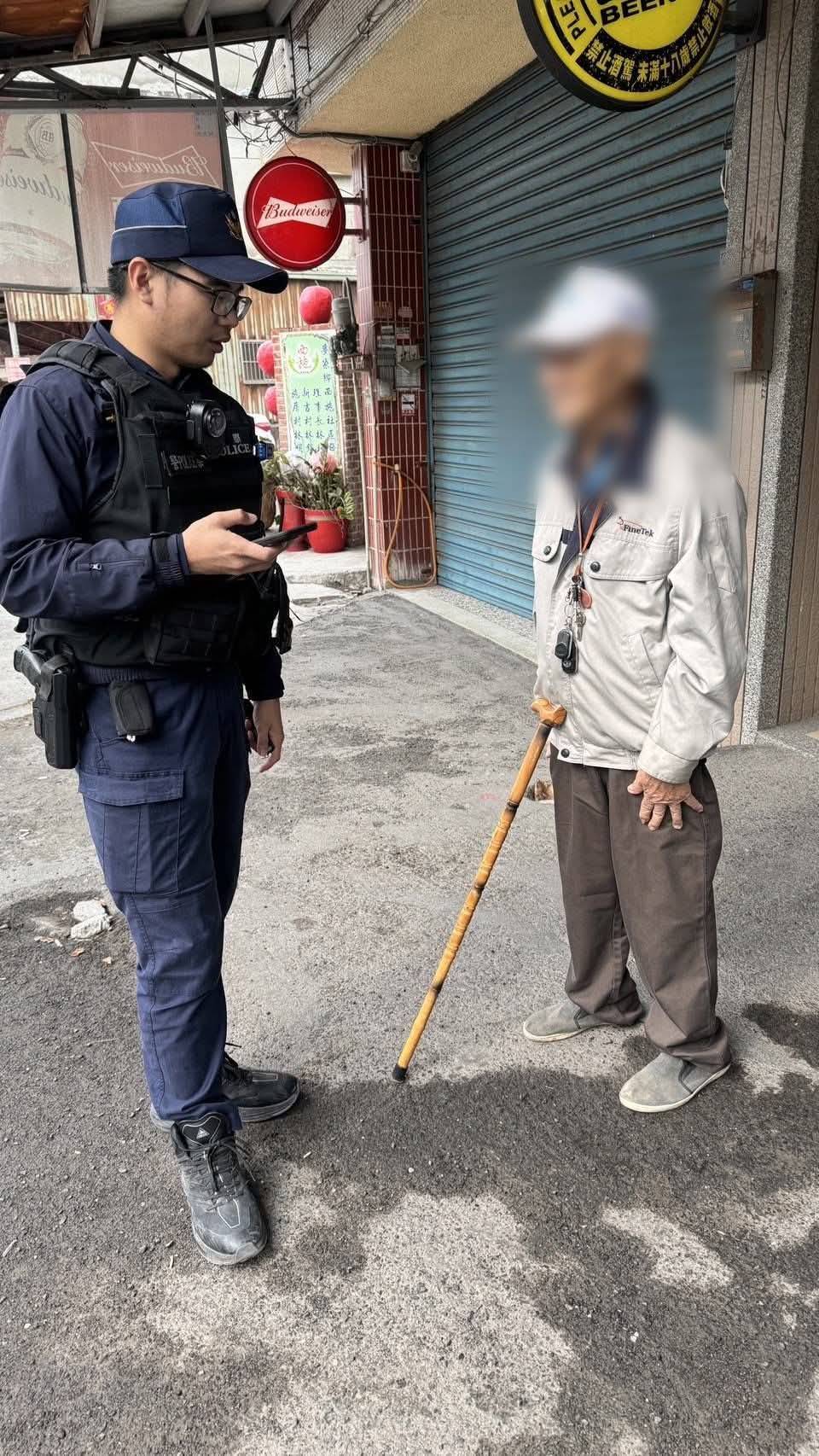 「警察先生,有一位老人家好像迷路了,你們可以來幫忙他嗎?」日前11時許,臺西分局橋頭派出所接獲民眾報案表示有老翁迷途,副所長黃振城、 警員丁翊烜獲報火速前往協助。