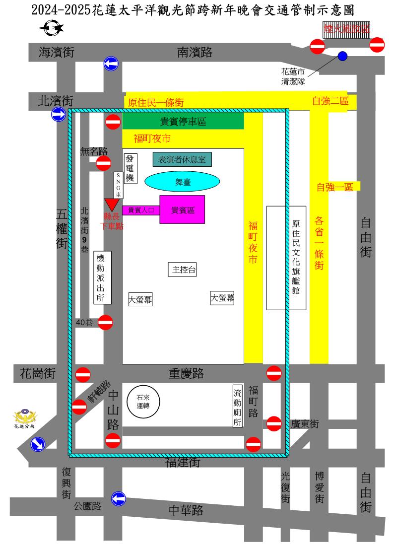 【記者陳晴澐花蓮報導】花蓮縣政府將於2024年12月31日及2025年1月1日,於花蓮市東大門廣場舉辦「2024-2025花蓮太平洋觀光節」跨年晚會活動。整場活動預計將湧入大量人車潮,為確保活動現場及周邊的安全與秩序,花蓮分局將全面執行多項安全維護與交通管制措施,確保全體參與民眾的安全。
