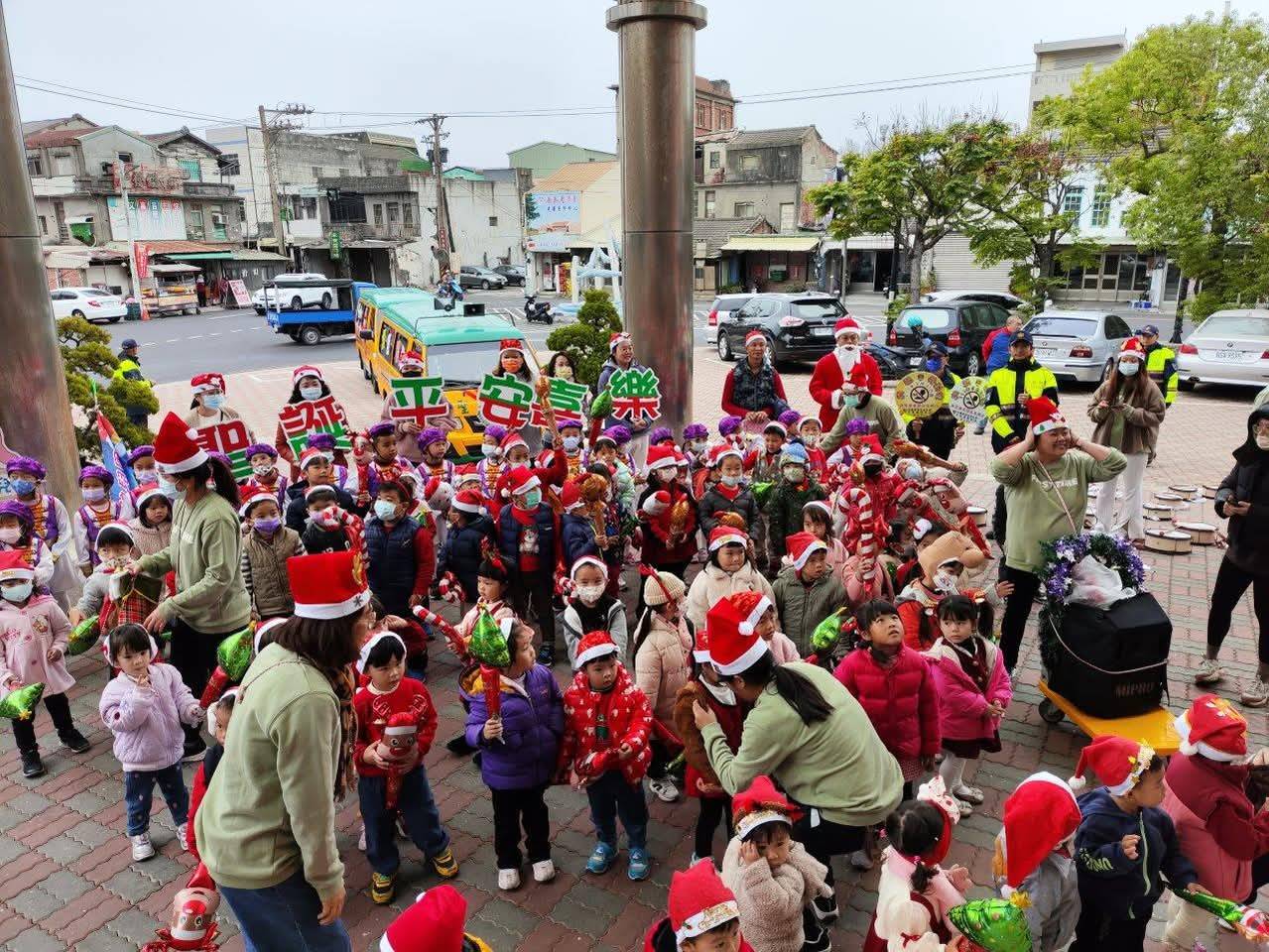 在幼稚園小小鼓手們的帶領下,報佳音的隊伍踩著鼓點沿路祝福大家聖誕快樂,幼童們身著聖誕服飾,走在臺西海口老街,立刻成為吸睛的拍照「嬌」點,員警也手持識詐、婦幼安全及交通安全宣導標語,沿路宣導民眾識詐觀念。最後,報佳音隊伍來到臺西分局,由小天使們表演可愛舞蹈,並由員警進行交通安全宣導,呼籲大家重視交通安全及「車輛慢看停 行人安全行」、「你我都可能是行人,停讓由我做起」等行人優先觀念,並提醒民眾「不超速、不逼車、不無照駕駛」、「不逞一時快 求得一路安」、「酒後找代駕 安全回到家」等交通安全觀念。