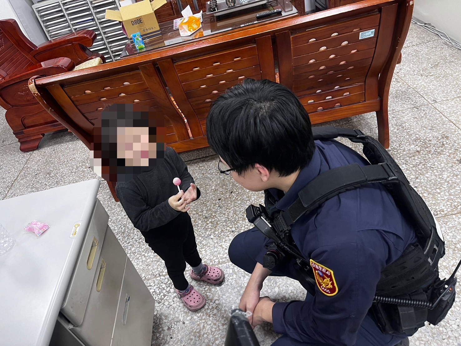 吉安分局仁里派出所今(8)日凌晨執行巡邏勤務時,接獲報案稱有一名女童在吉安鄉東海十街的便利商店內獨自徘徊疑似走失。仁里派出所警員林家儀、賴邑哲立即趕赴現場,到場後見陳姓女童(4歲)神情惶恐,孤身一人待在店內。