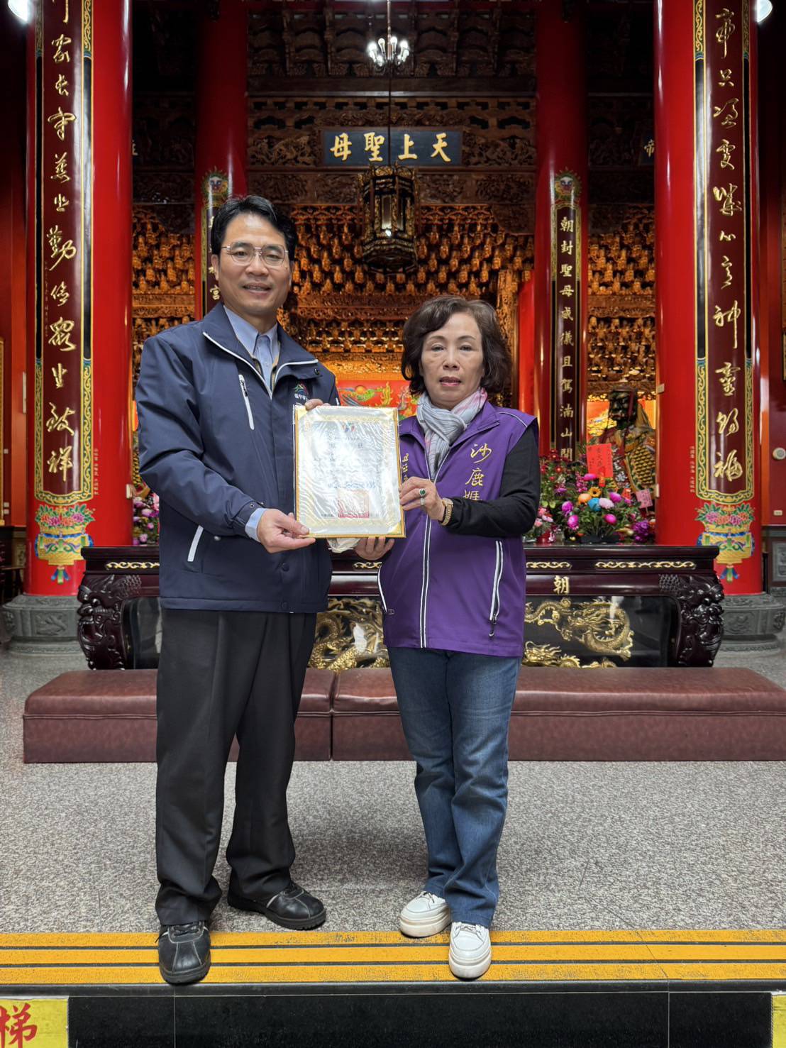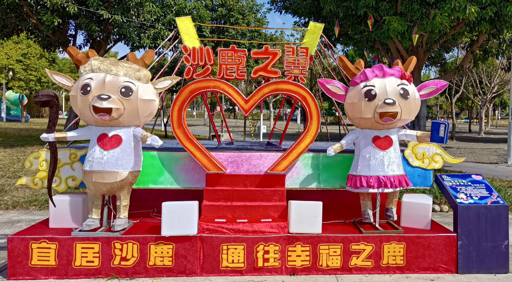 張區長表示今年沙鹿區公所精心製作(編號:27號)【宜居沙鹿,通往幸福之鹿】,將在燈會中的敦化路二段民政燈區閃耀登場,帶來浪漫又溫馨的視覺饗宴,沙鹿區特色燈組設計發想是以沙鹿地標「沙鹿之翼」作為花燈主軸,前方特別以超萌男版吉祥物𤆬(ㄘㄨㄚˇ)鹿、女版吉祥物丹鹿身穿情人裝,加上手持月老拐杖及姻緣簿化身為月老,而沙鹿之翼原本深淺交錯的鋼線,象徵連接著兩端情人的姻緣紅線, 攜手走往愛的幸福之路,帶給大家幸福喜悅的氛圍。