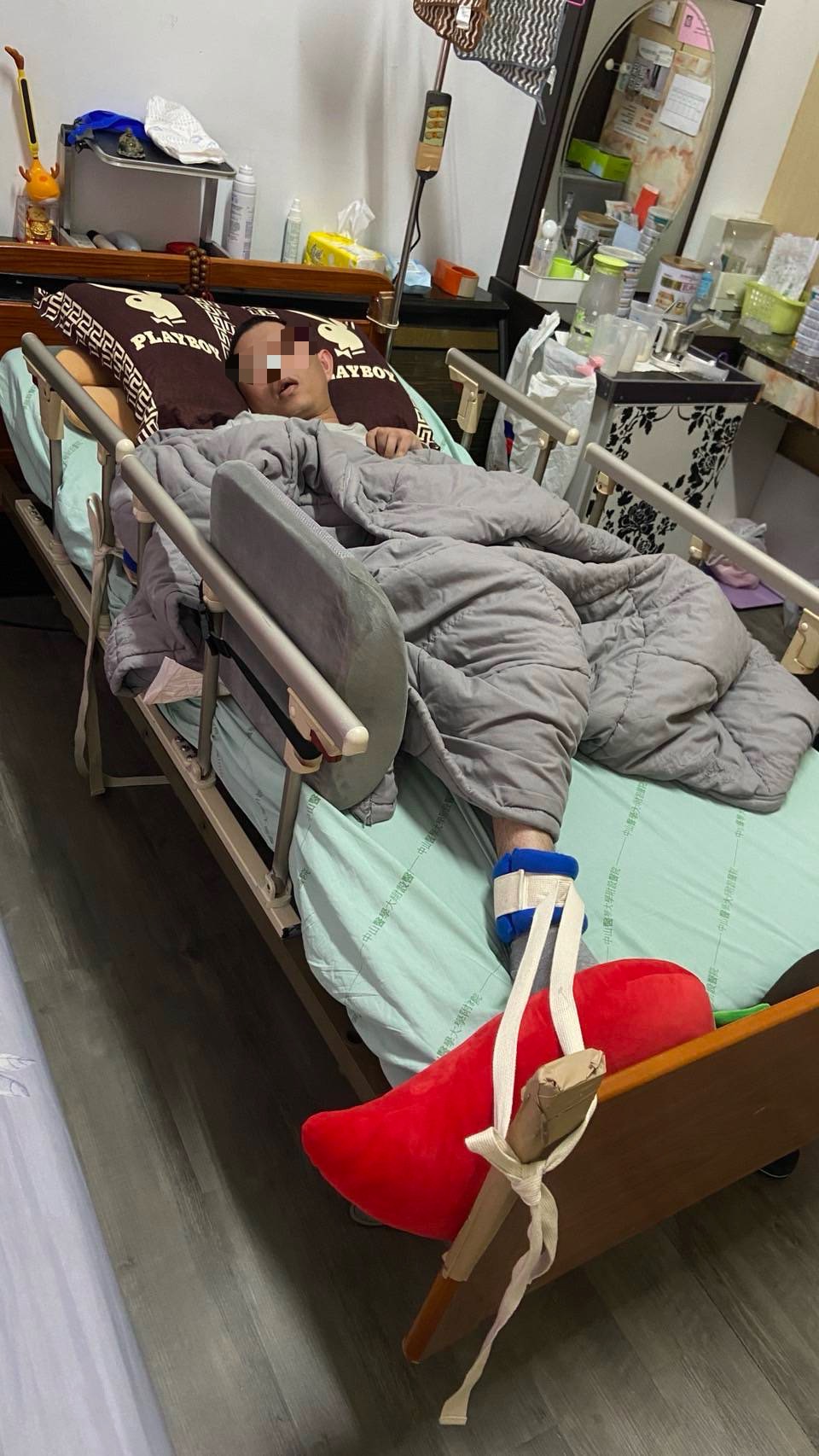 草屯二十七歲簡姓少年因車禍自撞,造成全身重度癱瘓,肌肉漸漸萎縮,需長期復健、拍痰、按摩、拉伸及跑醫院,稍不注意身體還有褥瘡的可能,生活上完全無法自理,該簡姓夫妻雖然還需奉養、照顧八十多歲的老母親及一位年僅八歲的小兒子,但還是不願放棄癱瘓在床的簡姓少年。