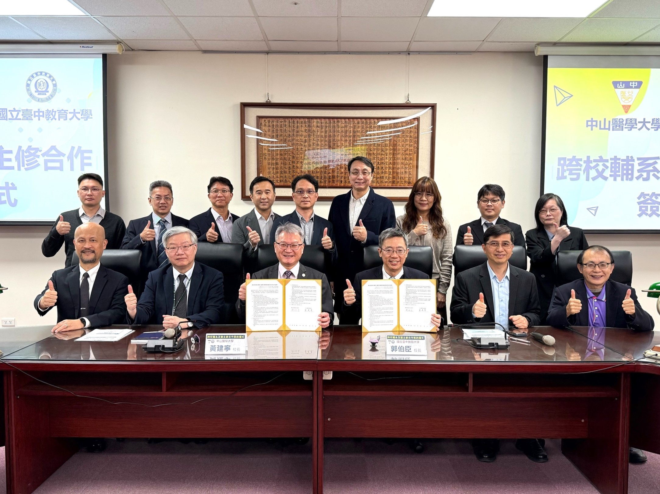 臺中中山醫學大學與國立臺中教育大學今(17)日上午正式簽署「跨校輔系及雙主修合作協議」,透過學術合作與資源共享,提供學生更多元的學習選擇。此合作讓學生可自由選擇雙主修或輔系,拓展跨學科專業知識,提升競爭力,並培養跨領域人才,以符合多元產業需求。這也是中山醫大繼與中興大學、東海大學合作後,再次推動的學習機制。