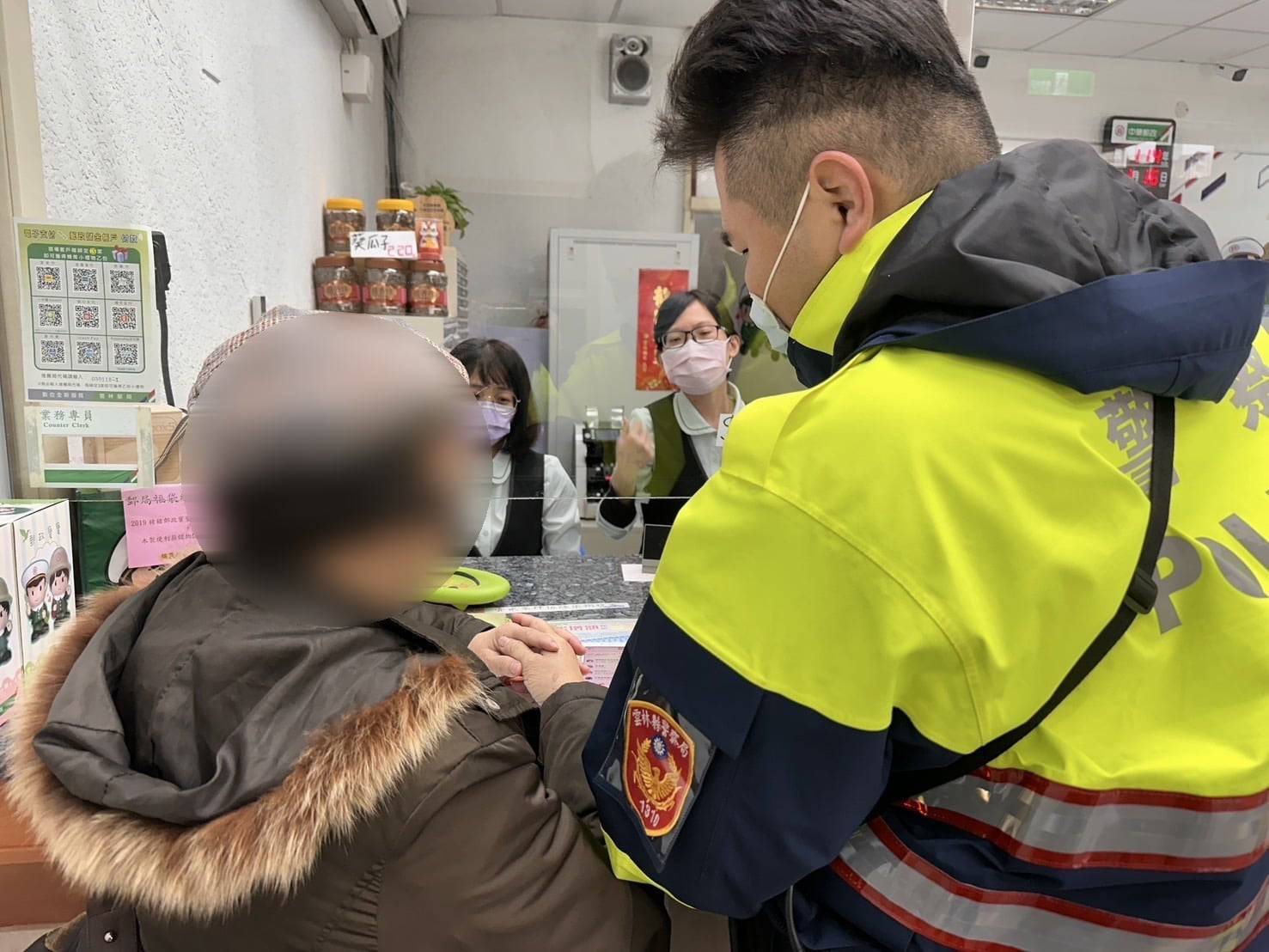 虎尾分局虎尾派出所警員李易璋、江柏霖於日前接獲虎尾圓環郵局通報,指稱一名張姓婦人欲匯款新臺幣200萬元。局員關懷提問,該婦人解釋是投資用途,過程中卻支吾其詞,銀行行員憂心她被詐騙,遂通報員警到場協助。經員警苦苦勸阻並向婦人說明相關詐騙手法,該婦人最終取消匯款並保住存款。