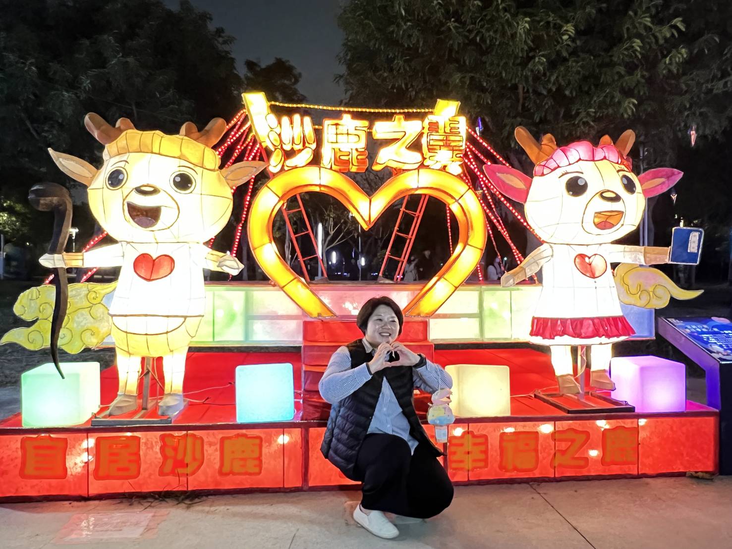 這次燈會具藝術性與娛樂性,絕對不能錯過,自開展已吸引超過400萬以上人次參觀,將於2月23日結束,臺中市議會副議長顏莉敏於20日也帶領團隊至現場參訪,除與民眾互動合影,現場氣氛熱烈,並在民政燈區沙鹿區燈組「宜居沙鹿,通往幸福之鹿」前留影。