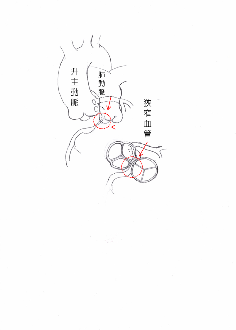 原因在冠狀動脈的位置出了問題,正常右冠狀動脈開頭的位置應該在大動脈根部前方出來,但病患的右冠動脈卻是從左側分出,途經肺動脈與大動脈的間隙(約1.5公分的距離),之後又回到原本右冠狀動脈的正常位置,將動脈含氧血供應給右心室與傳導神經。雖然這段距離不長,但遇到病患用力咳嗽或肚子出力,就會使肺動脈與大動脈壓力急遽上升而擠壓夾縫中的右冠狀動脈造成心臟缺血。文獻記載,這種疾病的發生機率約0.1%,平常的生活狀態也不會發病,只有上述的狀況才會引發心肌缺血,心絞痛,心律不整與心跳停止。特別的是有些病患,突發心跳停止的時間是運動當中或是運動中途休息的時候。而這類有明顯血管狹窄,心肌缺血問題者,接受冠狀動脈繞道手術是目前最安全,最有效的方式。