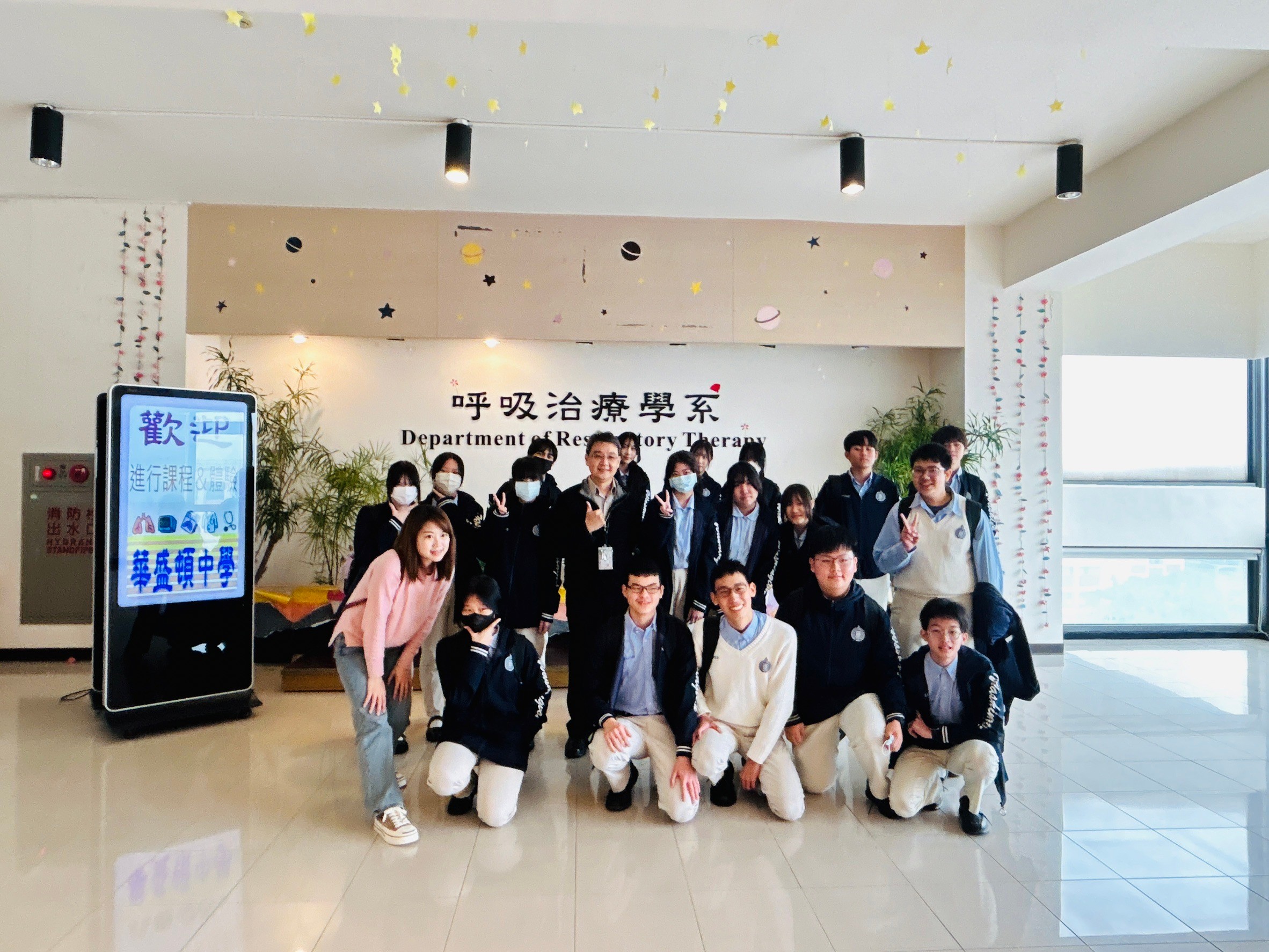 國三白鉉閎同學說,此次參訪體驗課程非常有趣,要救人不單單只是CPR,學習如何使用甦醒球急救及人工氣管插管等更進階的急救方式,另外也穿上咳痰背心,用呼吸道清潔震盪器體驗電動拍痰,都是很難得的體驗,特別感謝大學端教授帶領體驗,也謝謝學校提供如此珍貴的參訪機會。
