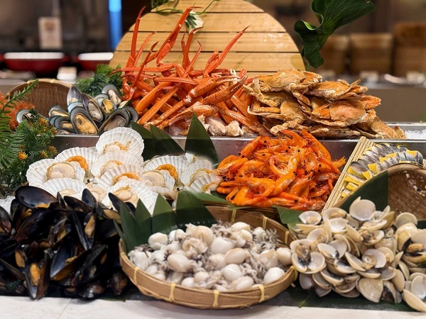 溫莎咖啡廳自助百匯以豐富的異國美食與海鮮饗宴聞名,此次旅展特別推出給公司、團體聚餐的超值組合,平日午/晚餐50人套票,平均每人只需NTD980。溫莎咖啡廳自助百匯每日供應超過150道豐富的經典菜餚,讓顧客大快朵頤。其中,最受推崇的當屬新鮮海鮮吧,平日午晚餐券於假日僅需加價NTD300,可享假日無限量供應【俄羅斯熟凍松葉蟹腳】,口感細膩、鮮甜多汁,還有來自愛爾蘭純淨海域的【頂級海王螺】,彈牙脆口,保留最原始的海味。其他熱門海鮮包括阿根廷天使紅蝦、越南美人蛤、泰國熟白蝦、翡翠貽貝、野生扁蟹等。現煎鐵板區也是賓客排隊的熱門區域,可品嚐到主廚新鮮現做的料理,如【台灣戰斧豬排】,以及只有假日限定的【爐烤菲力牛排】、【嫩煎干貝】、【香煎海大蝦】與【紐西蘭羊嫩肩】等精緻肉品。此外,經典現煮區也推出招牌料理【台灣擔仔麵】、【四川麻辣水煮魚】及假日限定的超派海鮮湯,為海鮮愛好者提供更多選擇。至於元膳鐵板燒也推出享樂午膳套餐券,一組五張,原價NTD7,040,旅展活動期間優惠NTD6,000。