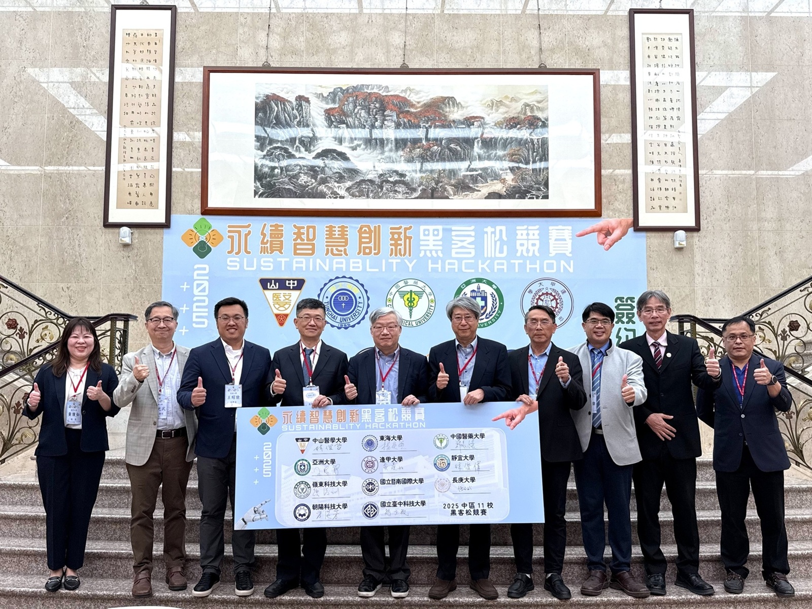 由台中中山醫學大學主辦的「2025永續智慧創新黑客松競賽」,今(8)日下午於該校正心樓舉行跨校合作備忘錄(MOU)簽署儀式,來自全台11所大專校院代表齊聚,攜手推動以聯合國永續發展目標(SDGs)為核心的創新競賽,強化學界與業界協同合作,培育具永續實作力的青年世代,實現知識創新與產業需求的無縫接軌。