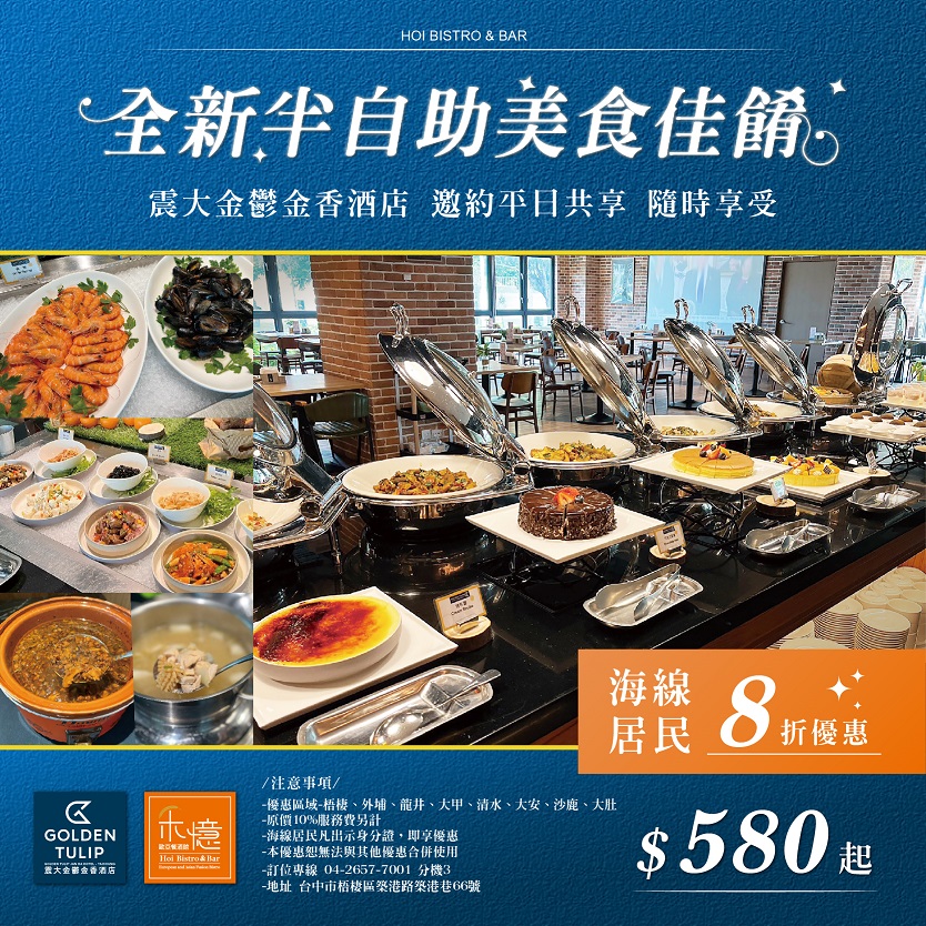 在台中這座融合現代與人文薈萃的城市中,海線一直是低調卻富含潛力的一隅。這裡有蔚藍的海岸線、有豐饒的土地,也有越來越多的旅人與在地人共同發掘的精彩角落。而現在,這片土地再添一筆精彩,震大金鬱金香酒店正式推出全新Semi-Buffet(半套自助餐),將在地農漁特產與多元異國料理完美結合,為前來台中海線(梧棲)的觀光客與商務人士打造一趟無與倫比的美食旅程,享受主菜加多樣歐美特色料理,加倍饗宴,提升味蕾感受。