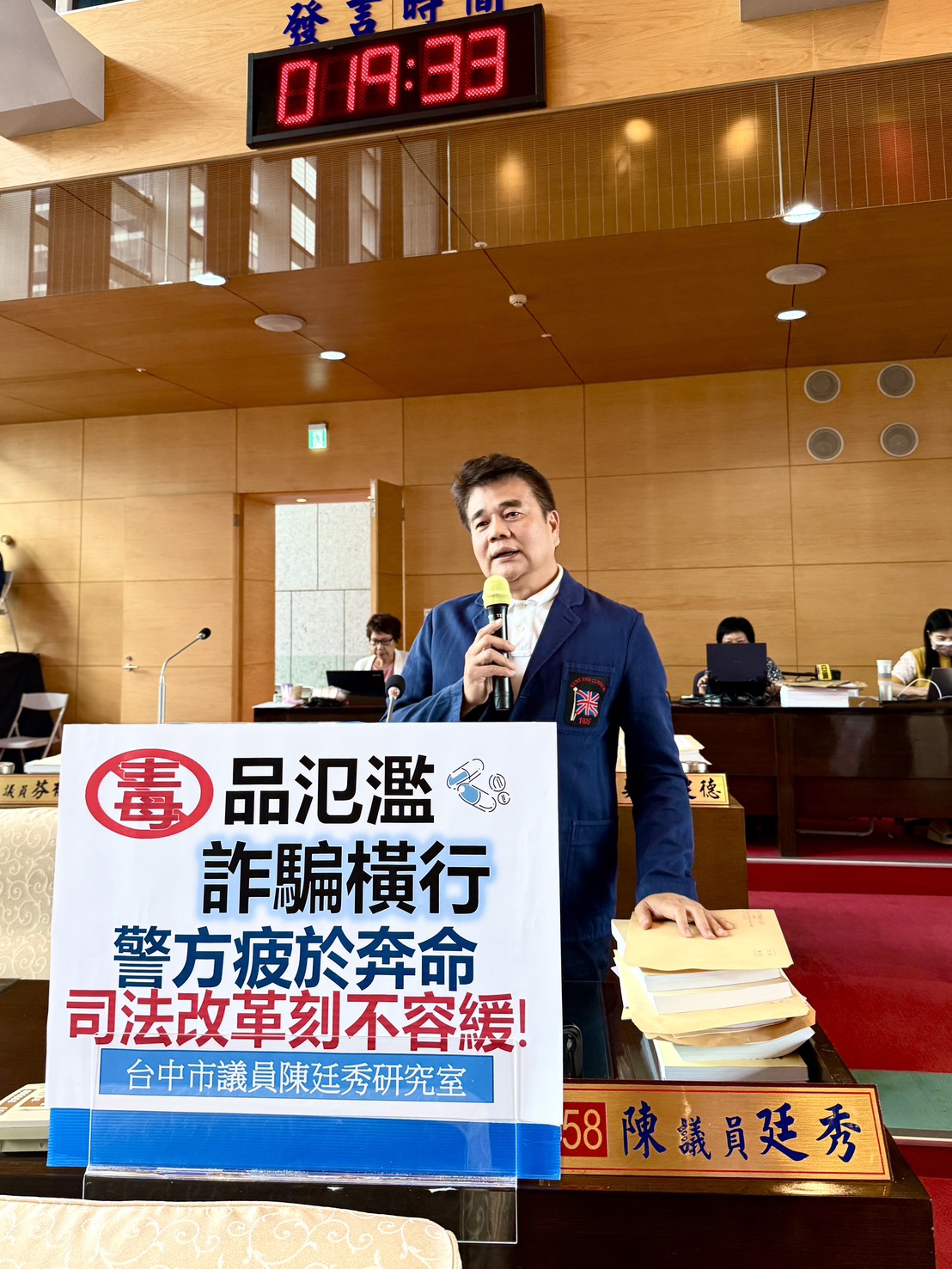 台中市無黨籍議員陳廷秀議會市政總質詢中談到,近期5月份就經歷兩次事件,第一件在5/21日,發生一位約40歲女性暴斃在廁所事件,當時警方也認真追查出,暴斃原因疑似與毒品有關,也尋線找出涉案嫌疑犯,但警方詢問後必須依法先予釋回?!