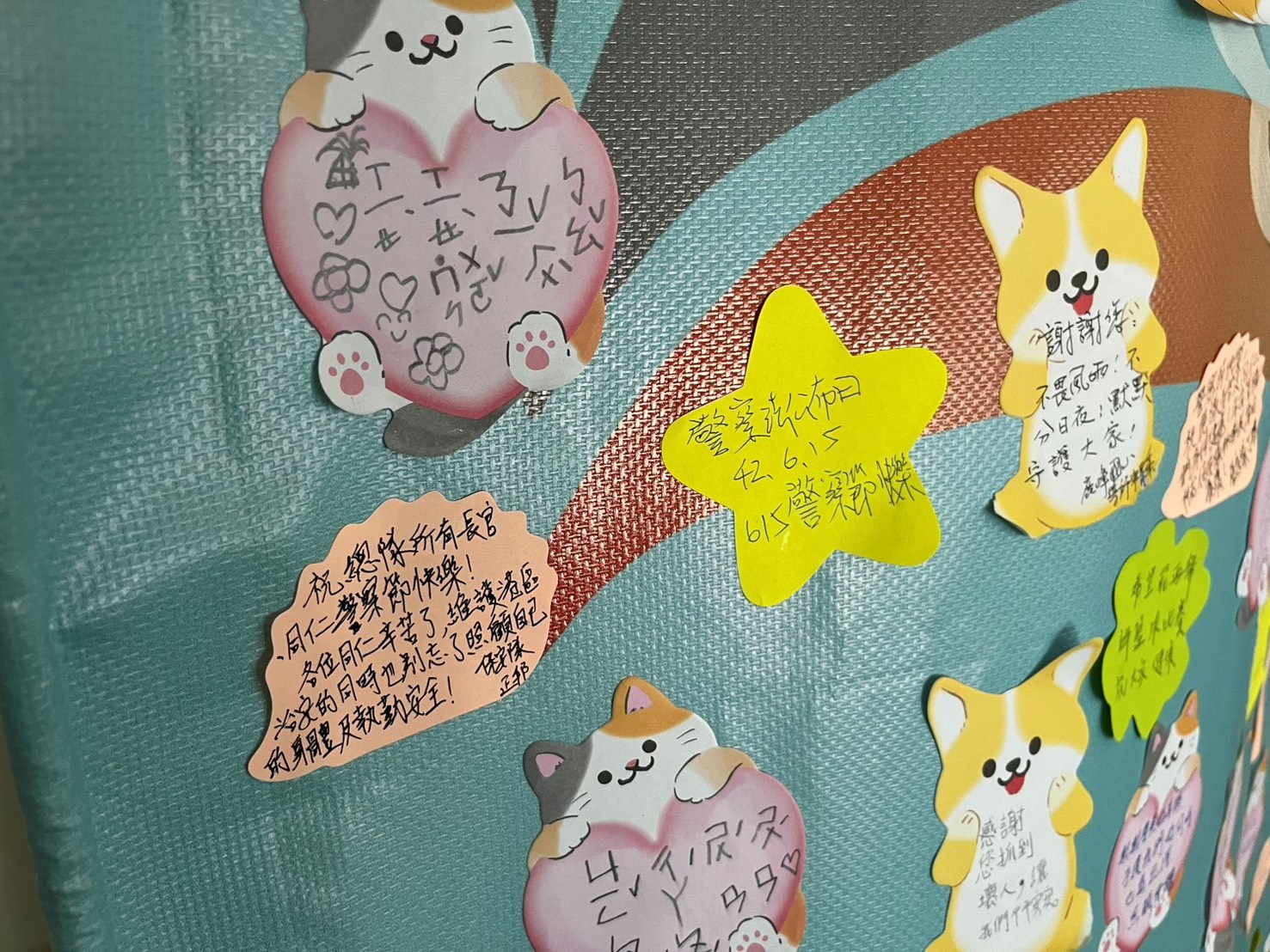 警察節是專屬於每位警察同仁的重要節日,在活動尾聲安排退休同仁的薩克斯風樂器演奏,曲目為彼個小姑娘、川流不息,悠揚的樂聲搭配豐富又美味的茶點,完美地慰勞了所有同仁及在座貴賓。會場門口設置的「警港心」(真感心)感恩祈福牆,更成為同仁交流情感的窗口,如小朋友謝謝警察叔叔的保護、家人對先生從事警察工作的支持及同仁間的互相感謝等。字字祝福、句句感恩,在節日的氛圍下留下溫暖的回憶,也凝聚了團隊情誼與向心力!